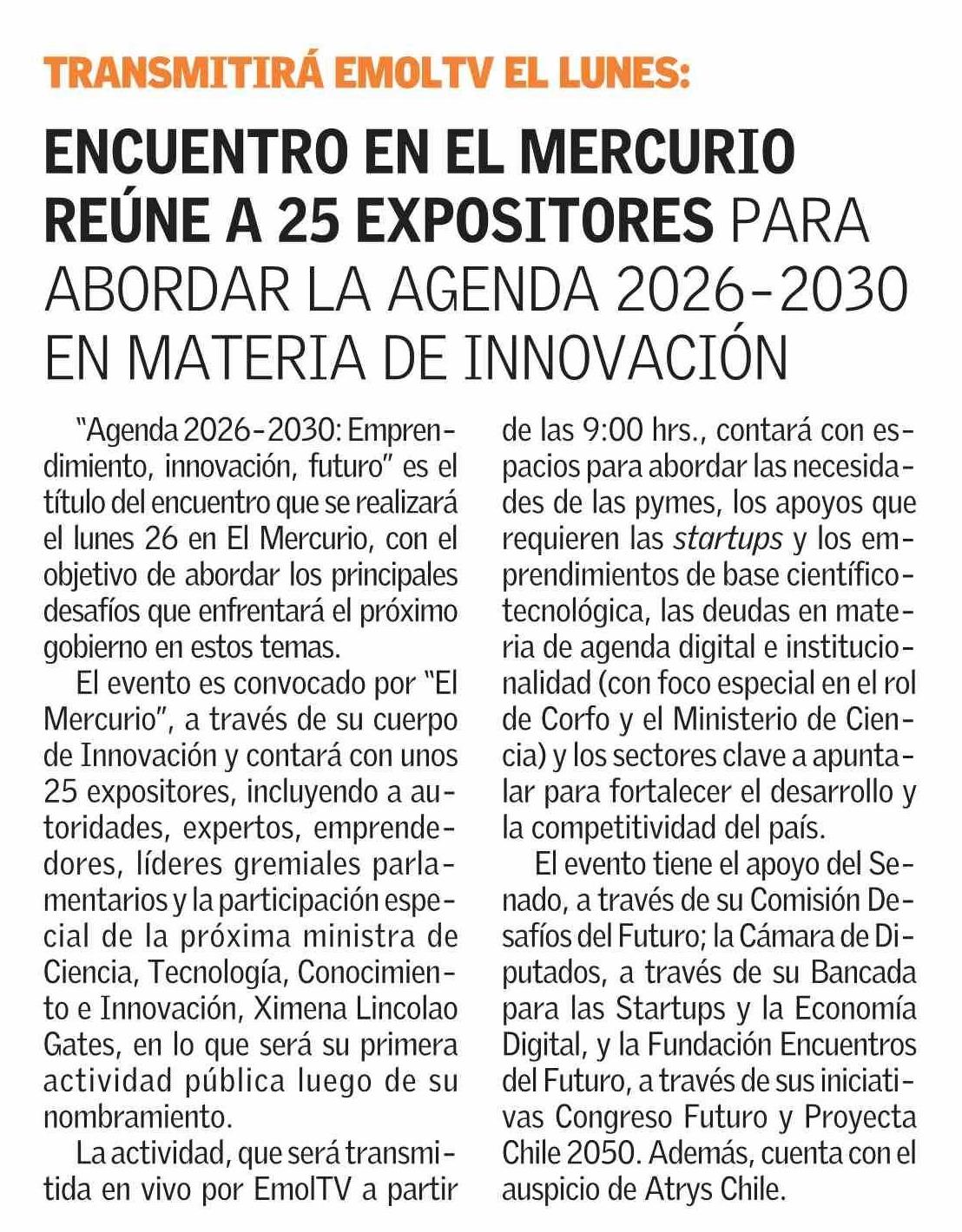 ENCUENTRO EN EL MERCURIO REÚNE A 25 EXPOSITORES PARA ABORDAR LA AGENDA 2026-2030 EN MATERIA DE INNOVACIÓN