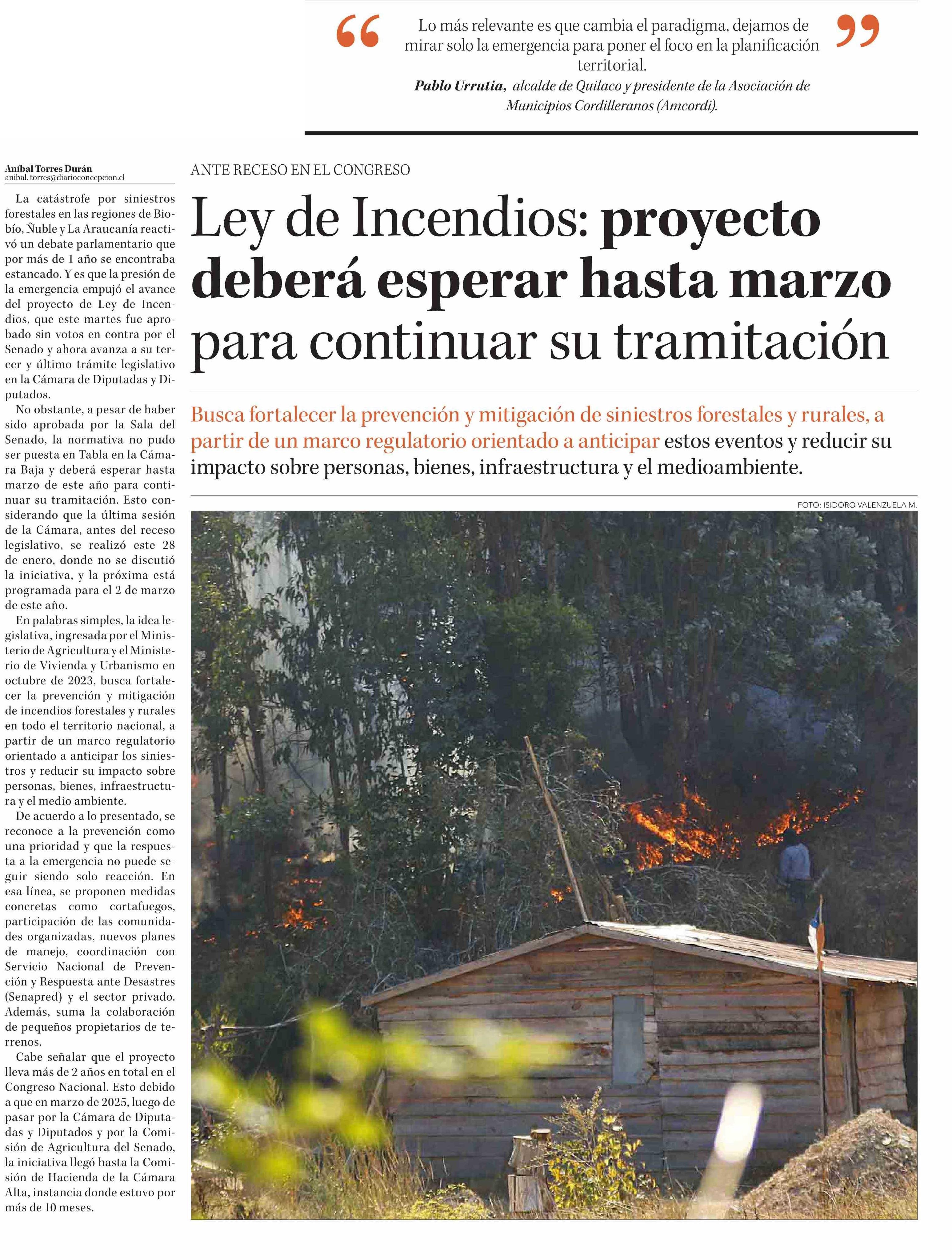 Ley de Incendios: proyecto deberá esperar hasta marzo para continuar su tramitación