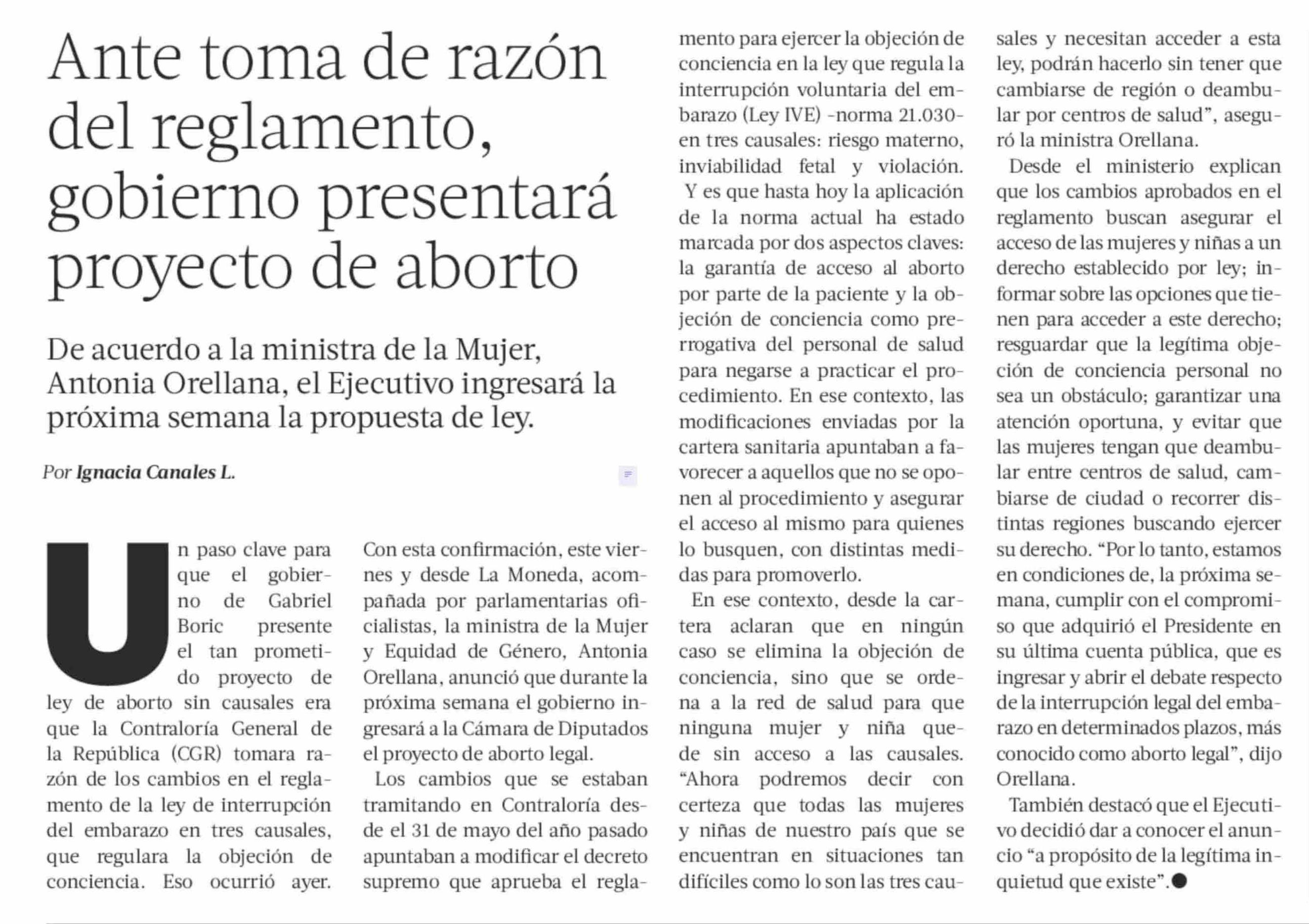 Ante toma de razón del reglamento, gobierno presentará proyecto de aborto