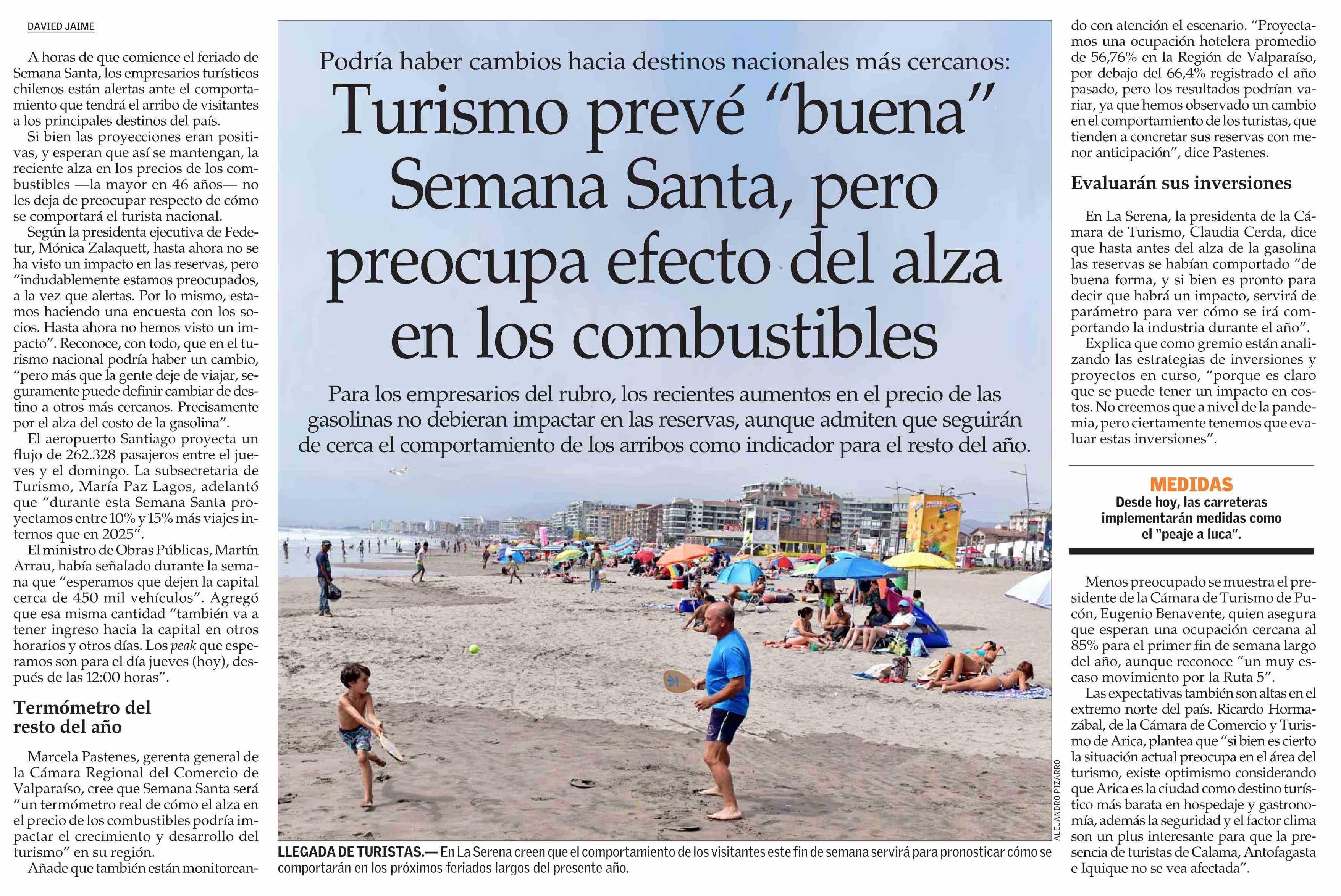 Título: Turismo prevé “buena” Semana Santa, pero preocupa efecto del alza en los combustibles