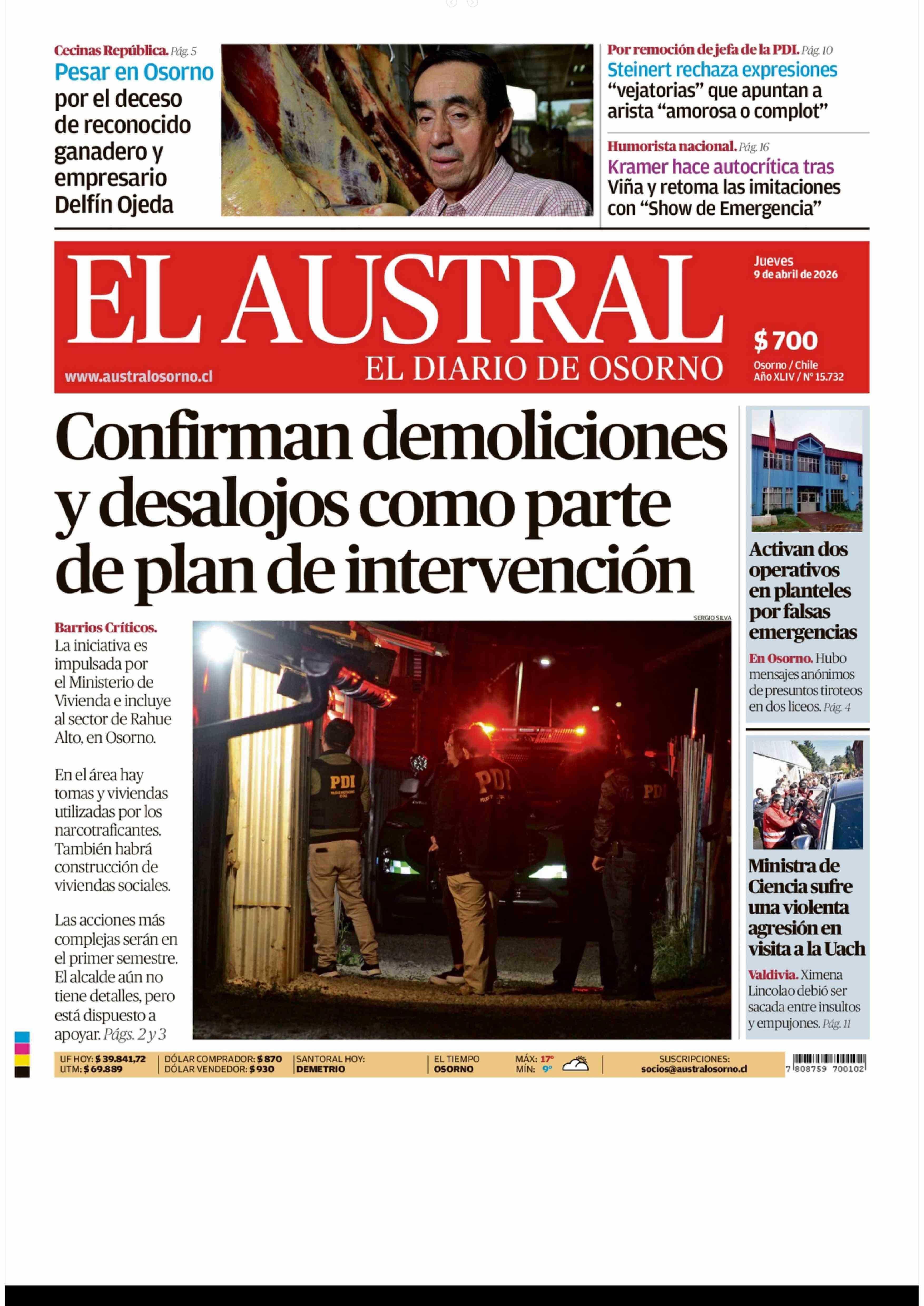 PORTADA EL AUSTRAL DE OSORNO CHILE