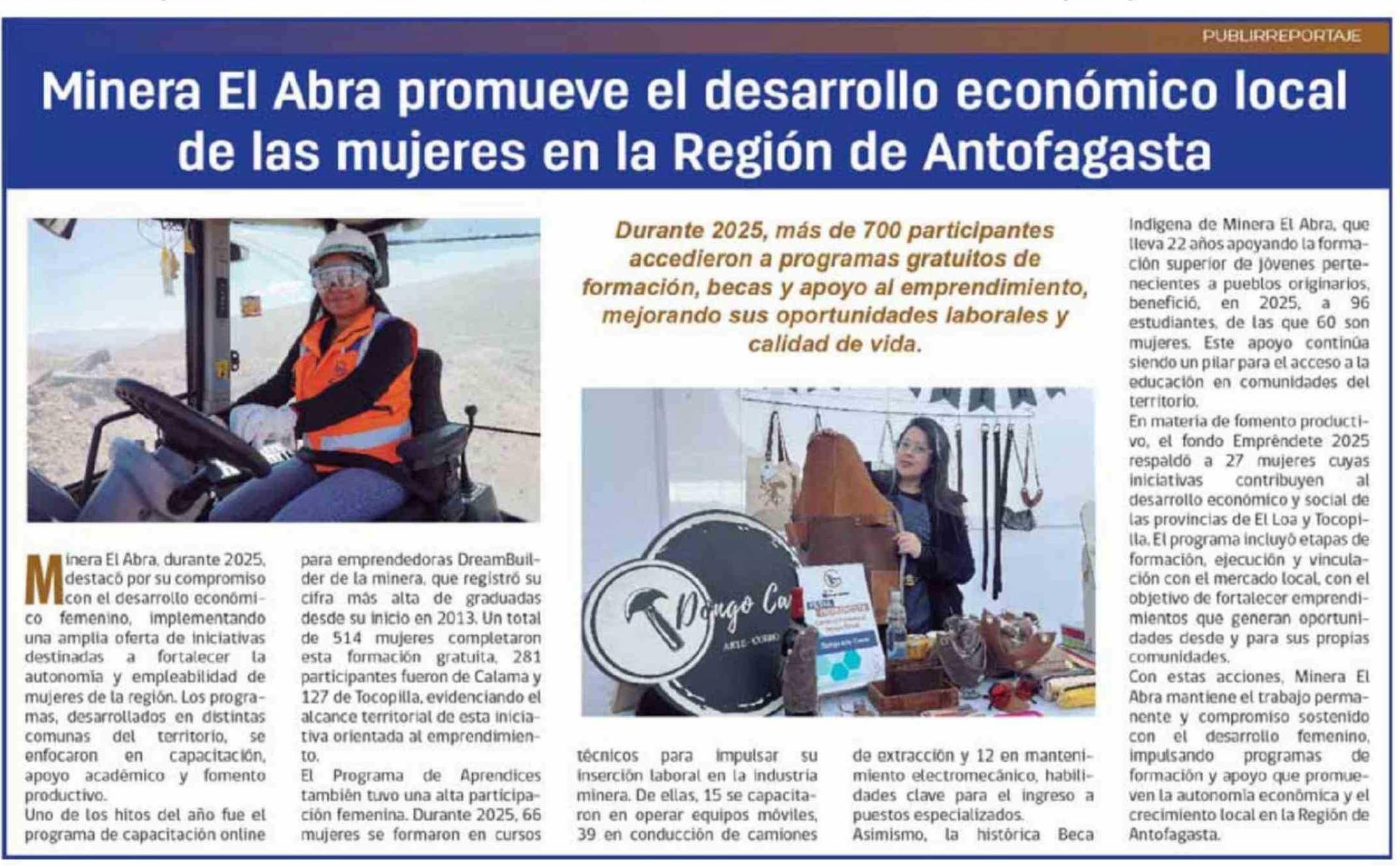 Minera El Abra promueve el desarrollo económico local de las mujeres en la Región de Antofagasta