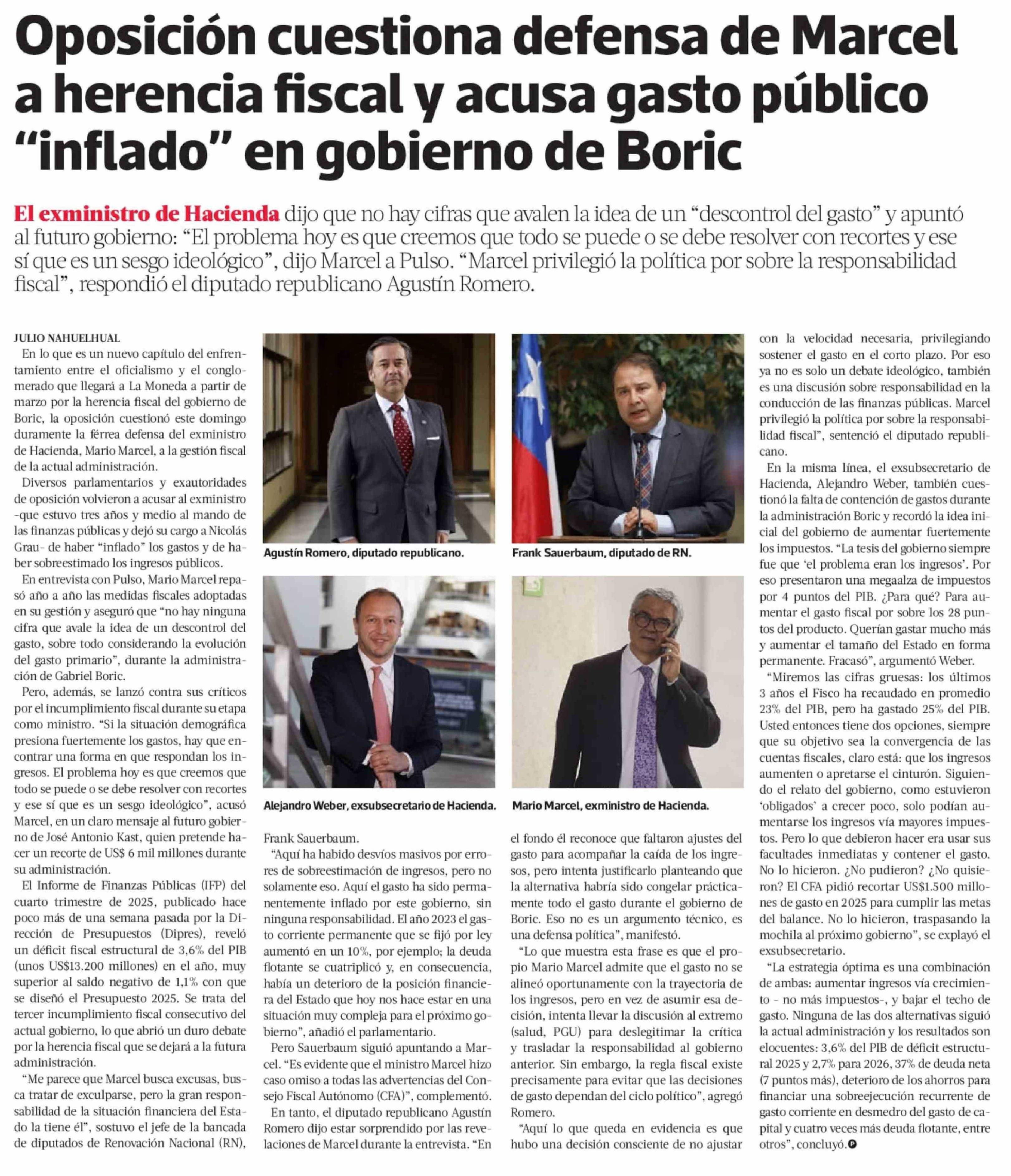 Oposición cuestiona defensa de Marcel a herencia fiscal y acusa gasto público "inflado" en gobierno de Boric