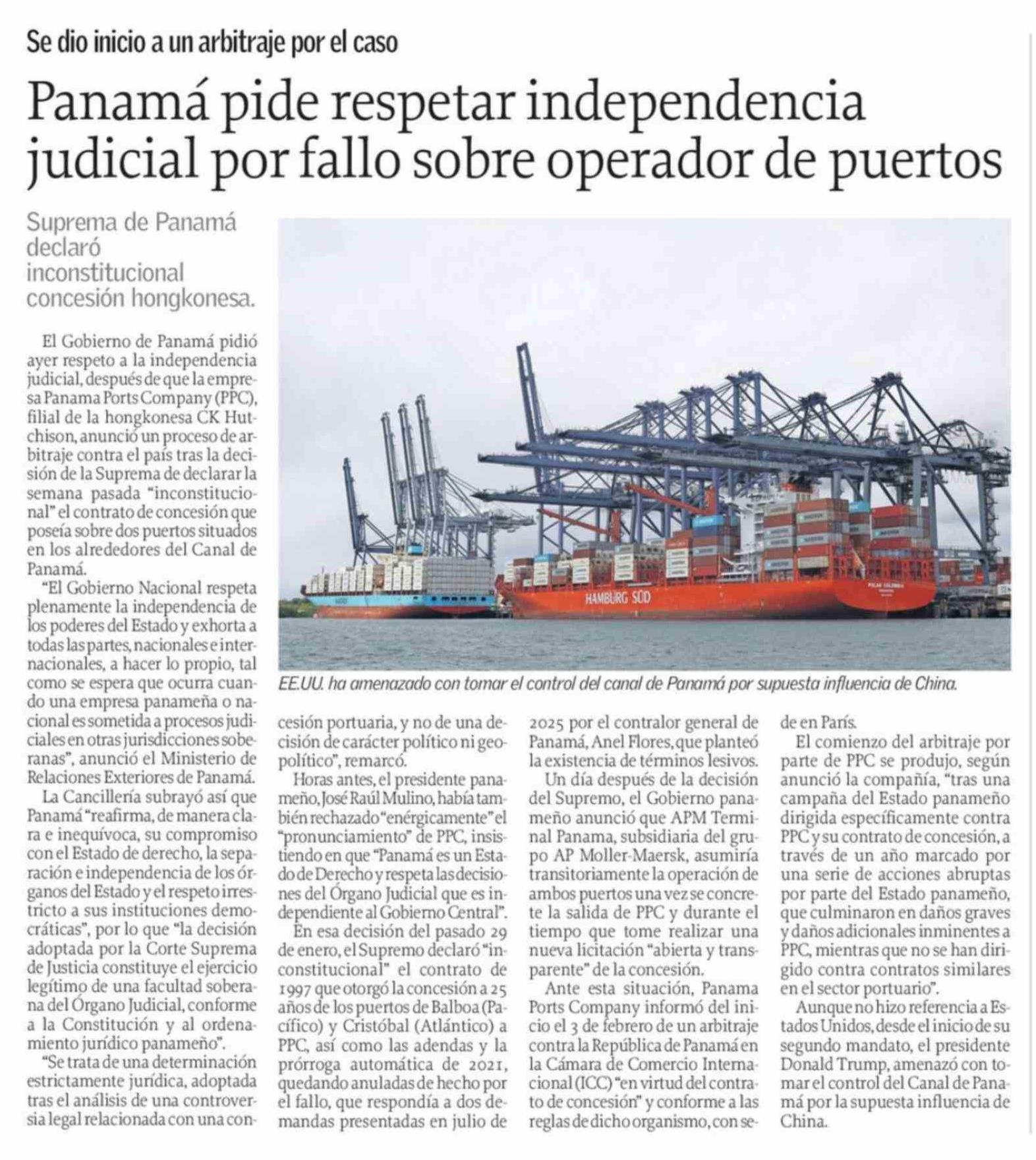 Panamá pide respetar independencia judicial por fallo sobre operador de puertos