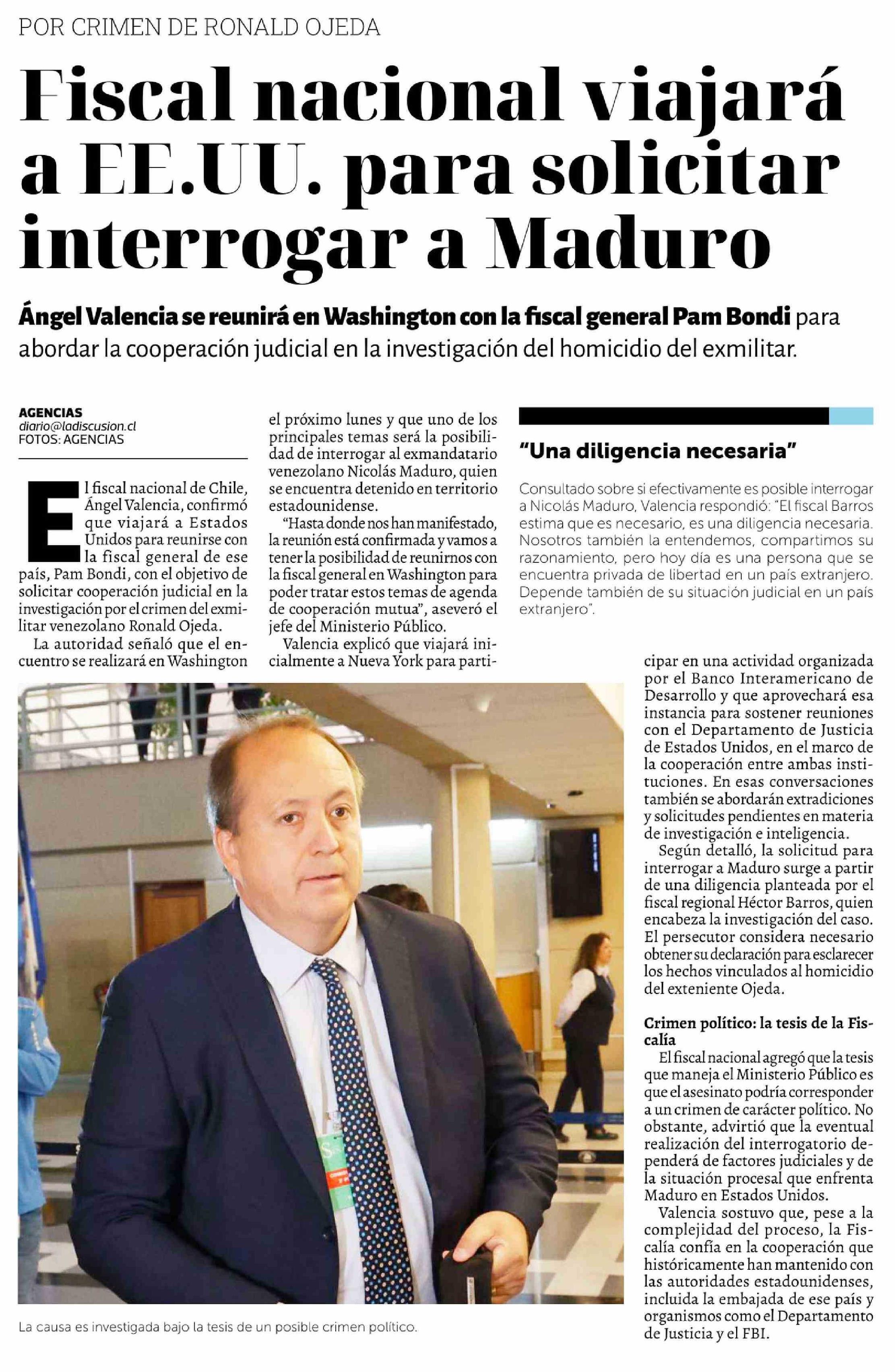 Fiscal nacional viajará a EE.UU. para solicitar interrogar a Maduro