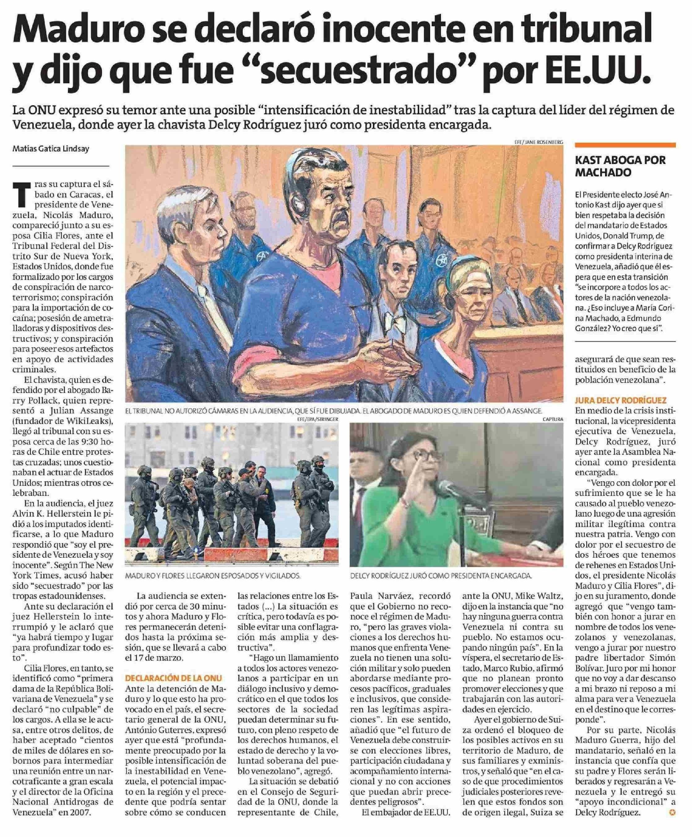 Maduro se declaró inocente en tribunal y dijo que fue "secuestrado" por EE.UU.