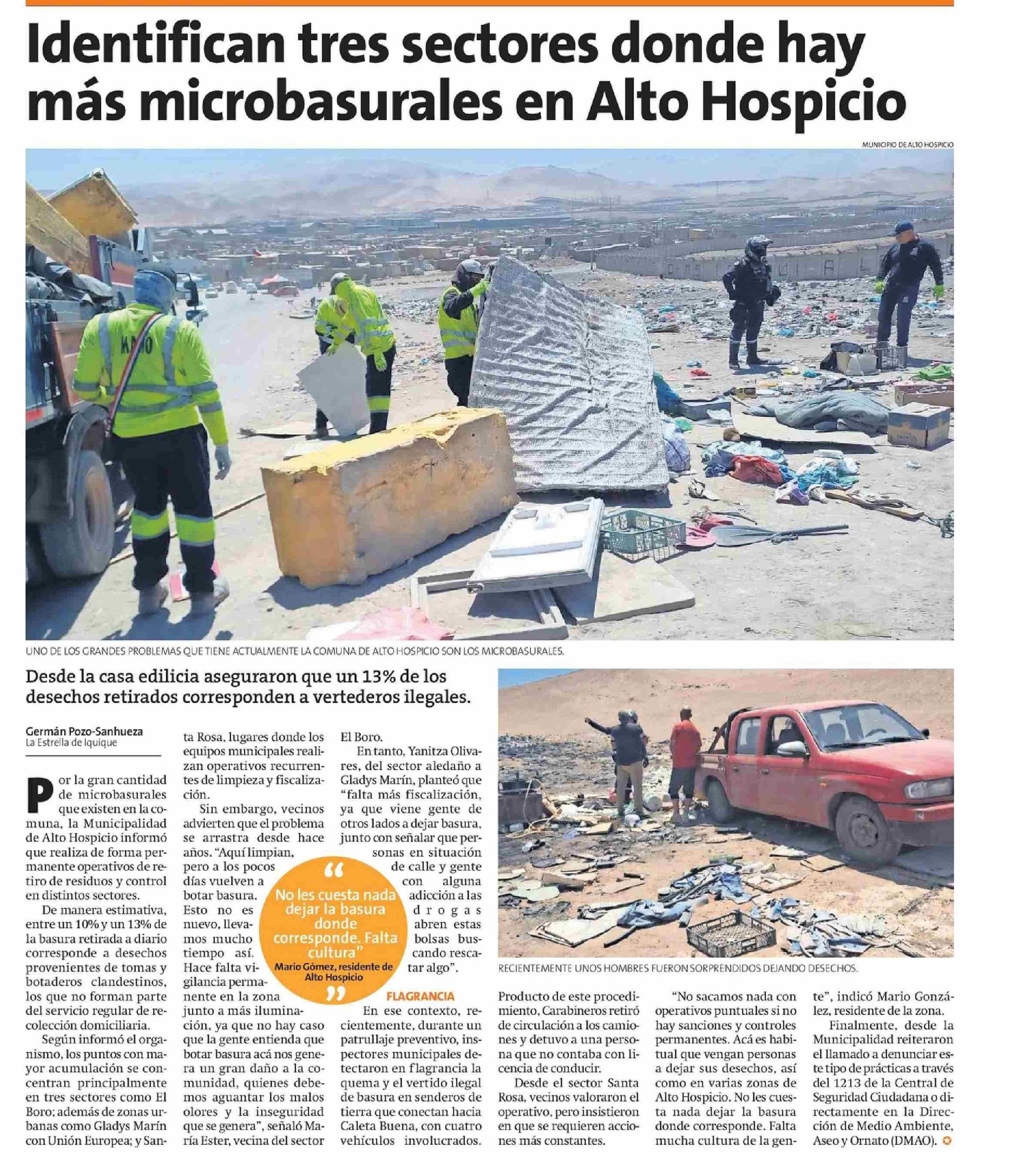 Título: Identifican tres sectores donde hay más microbasurales en Alto Hospicio
