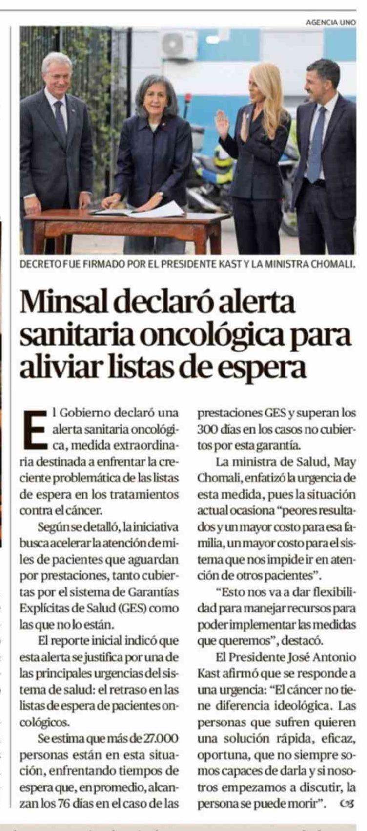 Minsal declaró alerta sanitaria oncológica para aliviar listas de espera