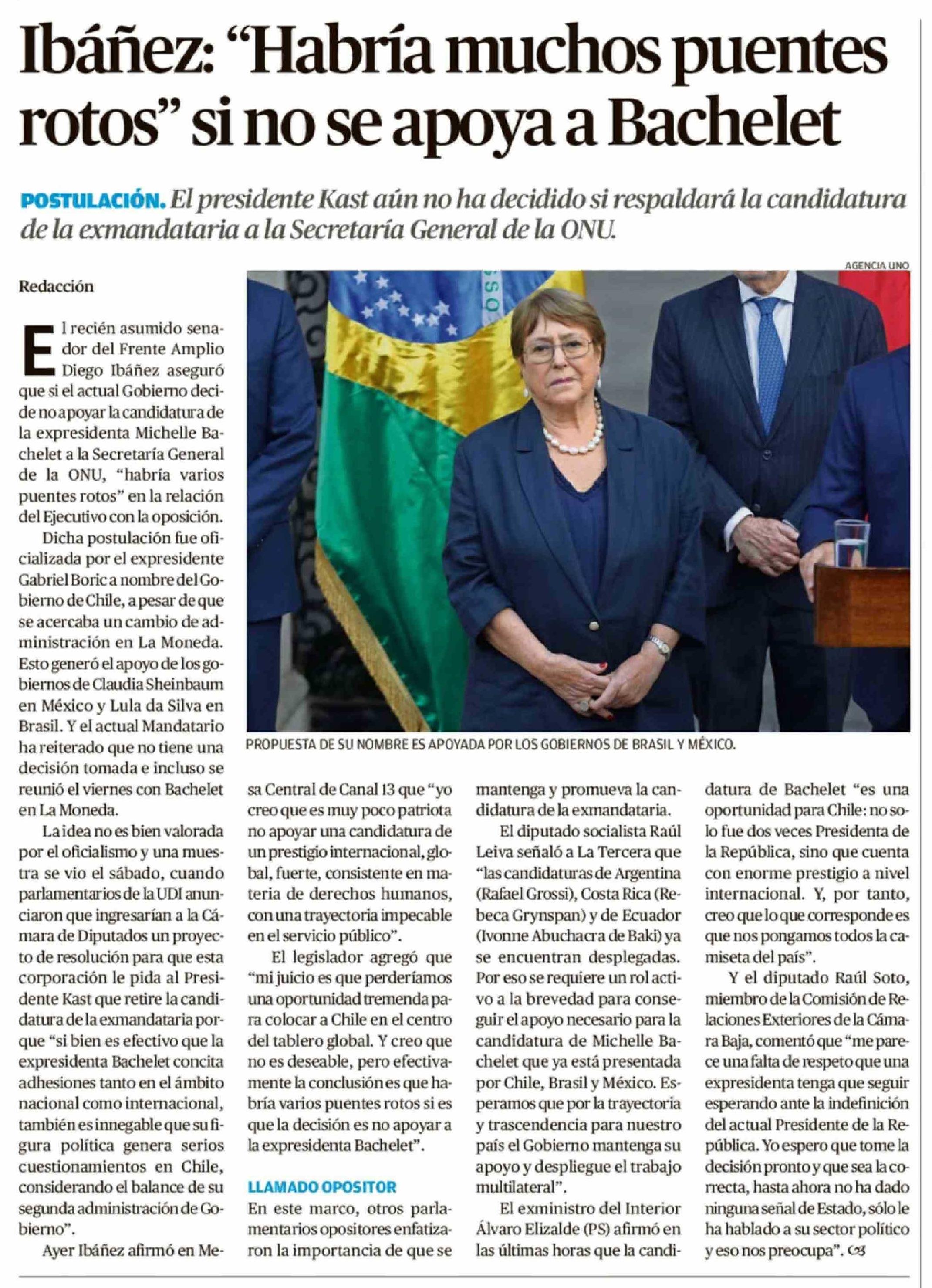 Ibáñez: "Habría muchos puentes rotos" si no se apoya a Bachelet