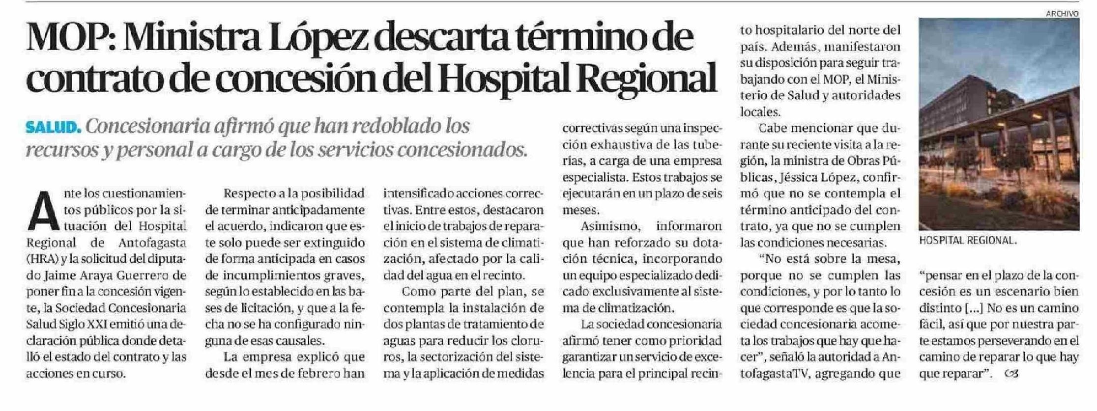 MOP: Ministra López descarta término de contrato de concesión del Hospital Regional