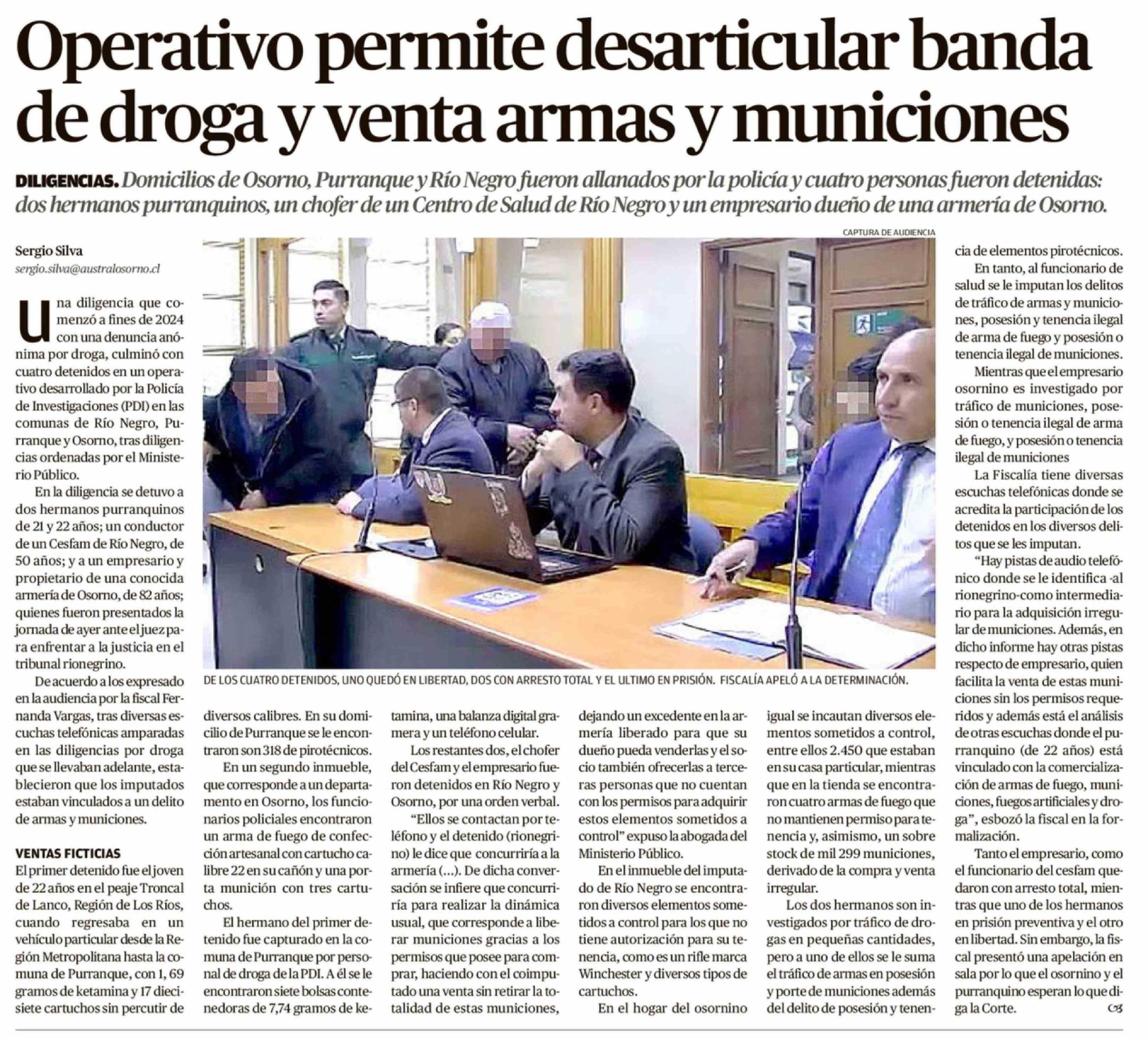 Título: Operativo permite desarticular banda de droga y venta armas y municiones