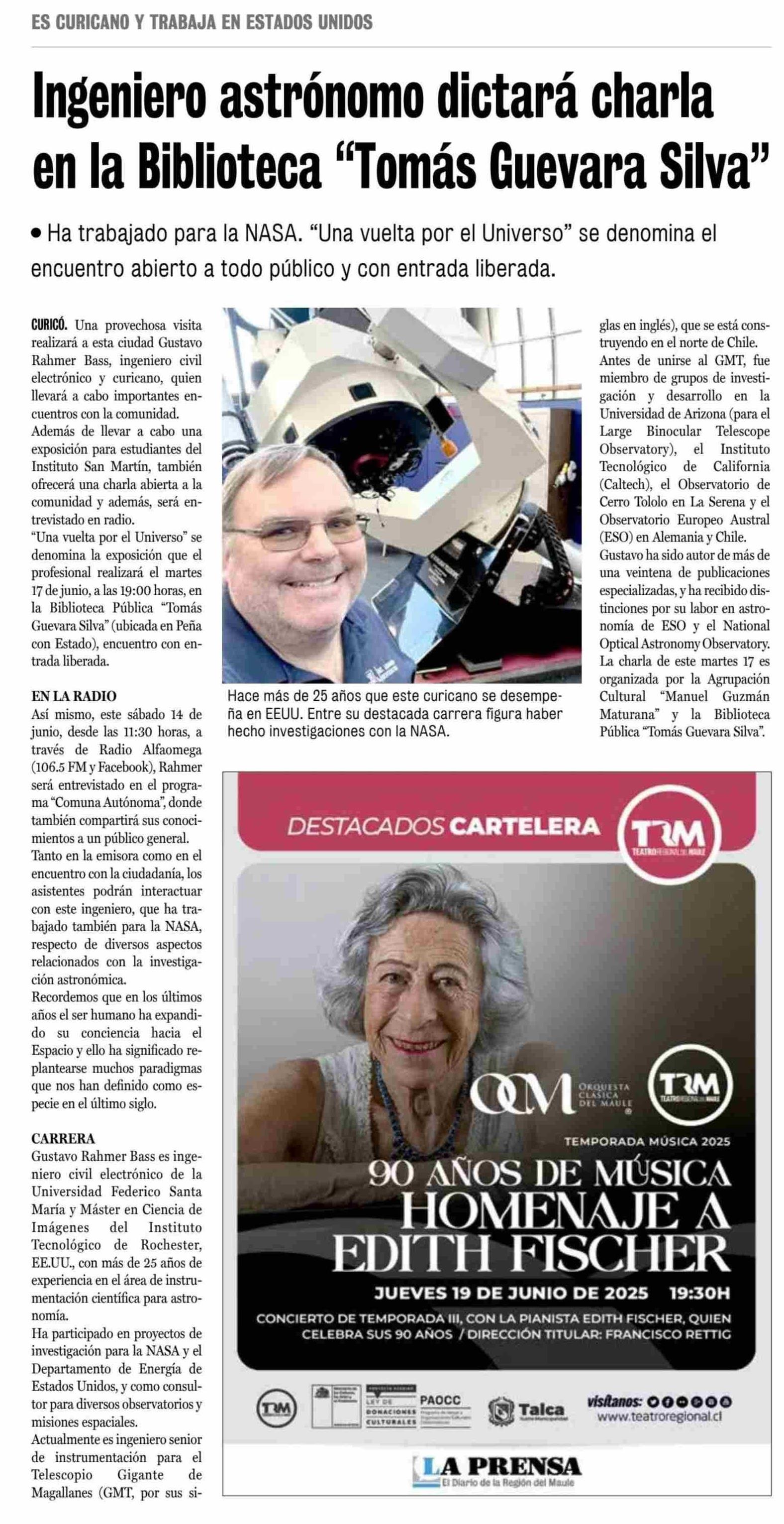 Ingeniero astrónomo dictará charla en la Biblioteca “Tomás Guevara Silva”