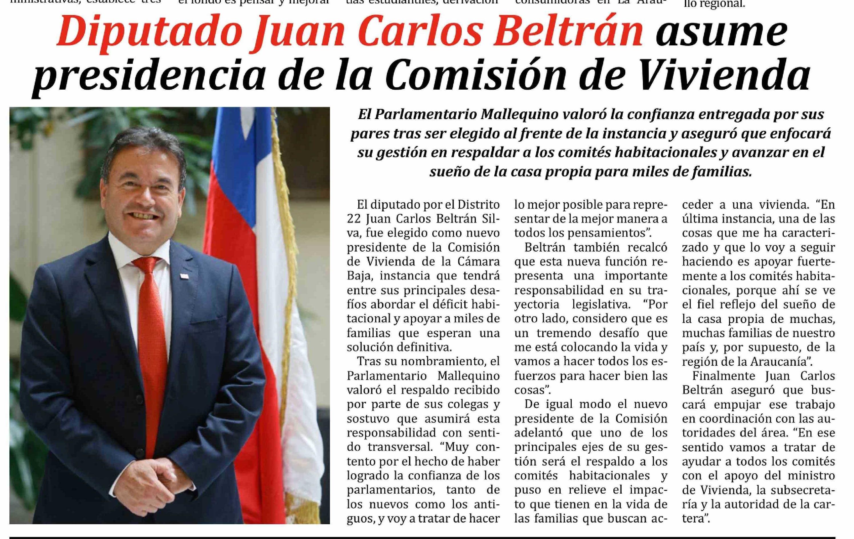 Diputado Juan Carlos Beltrán asume presidencia de la Comisión de Vivienda