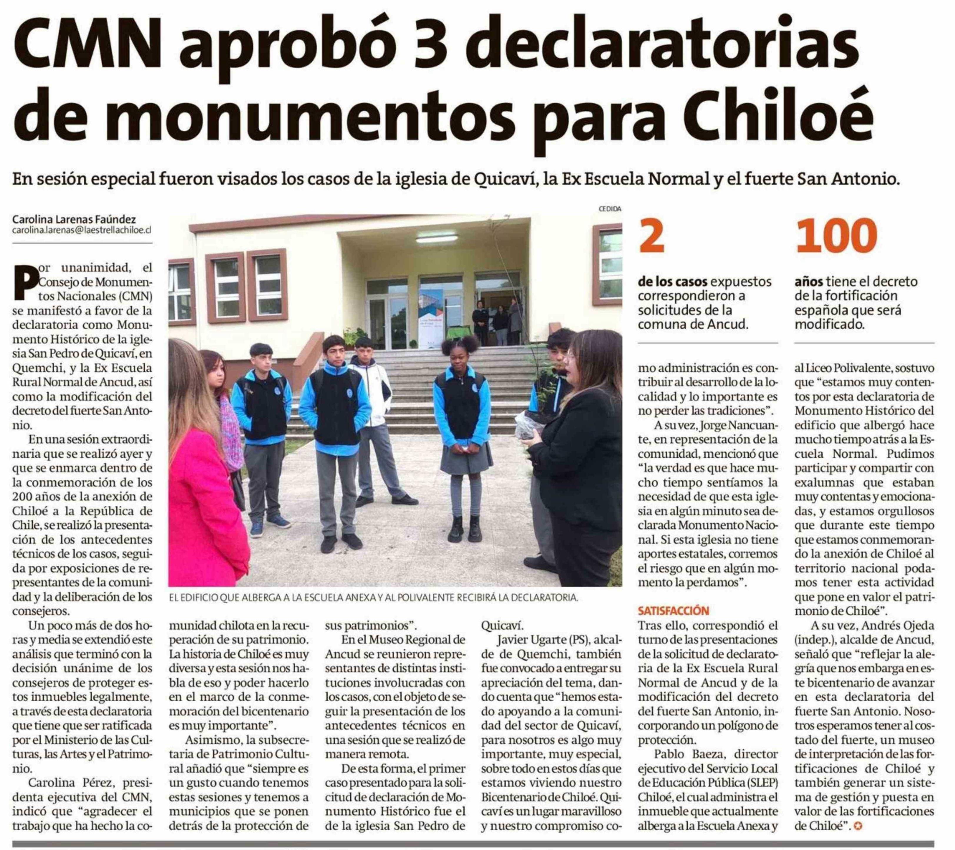 CMN aprobó 3 declaratorias de monumentos para Chiloé