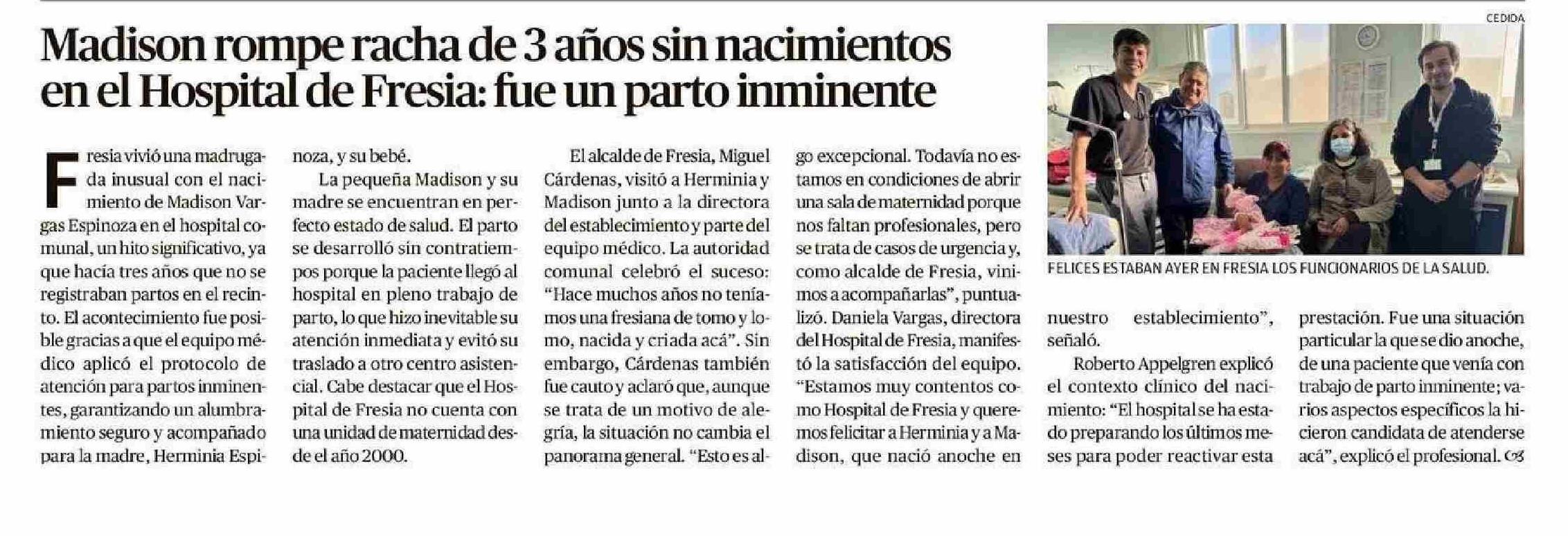 Madison rompe racha de 3 años sin nacimientos en el Hospital de Fresia: fue un parto inminente