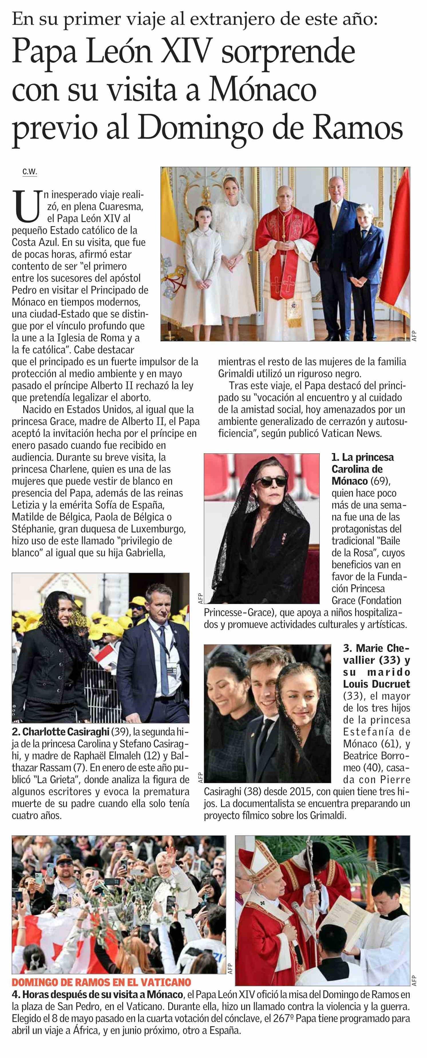 Título: Papa León XIV sorprende con su visita a Mónaco previo al Domingo de Ramos