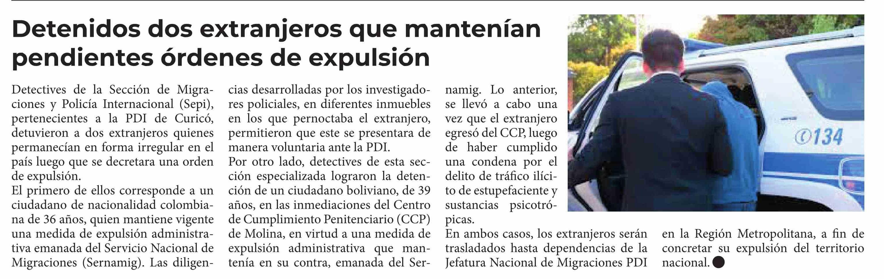 Detenidos dos extranjeros que mantenían pendientes órdenes de expulsión