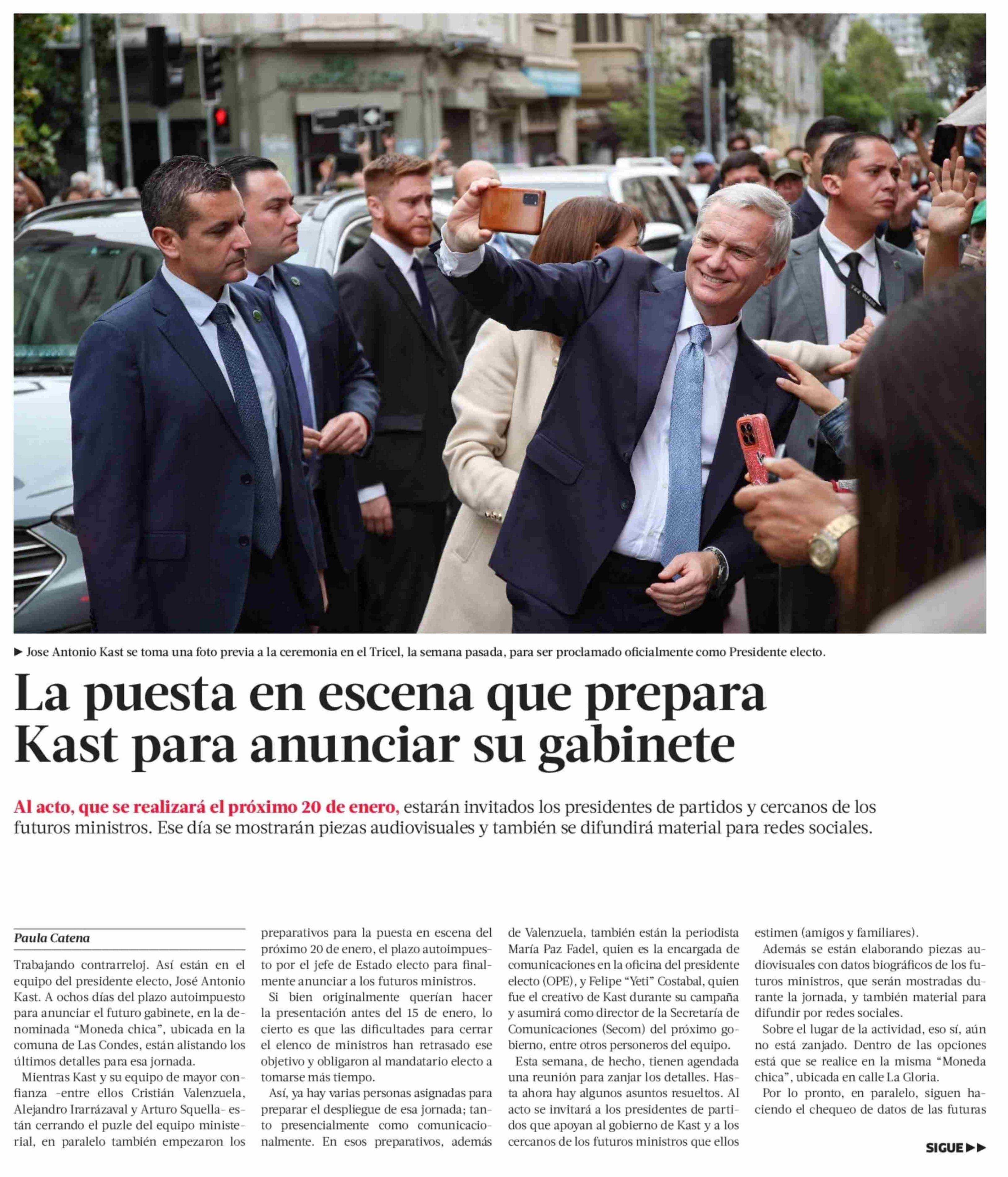 La puesta en escena que prepara Kast para anunciar su gabinete
