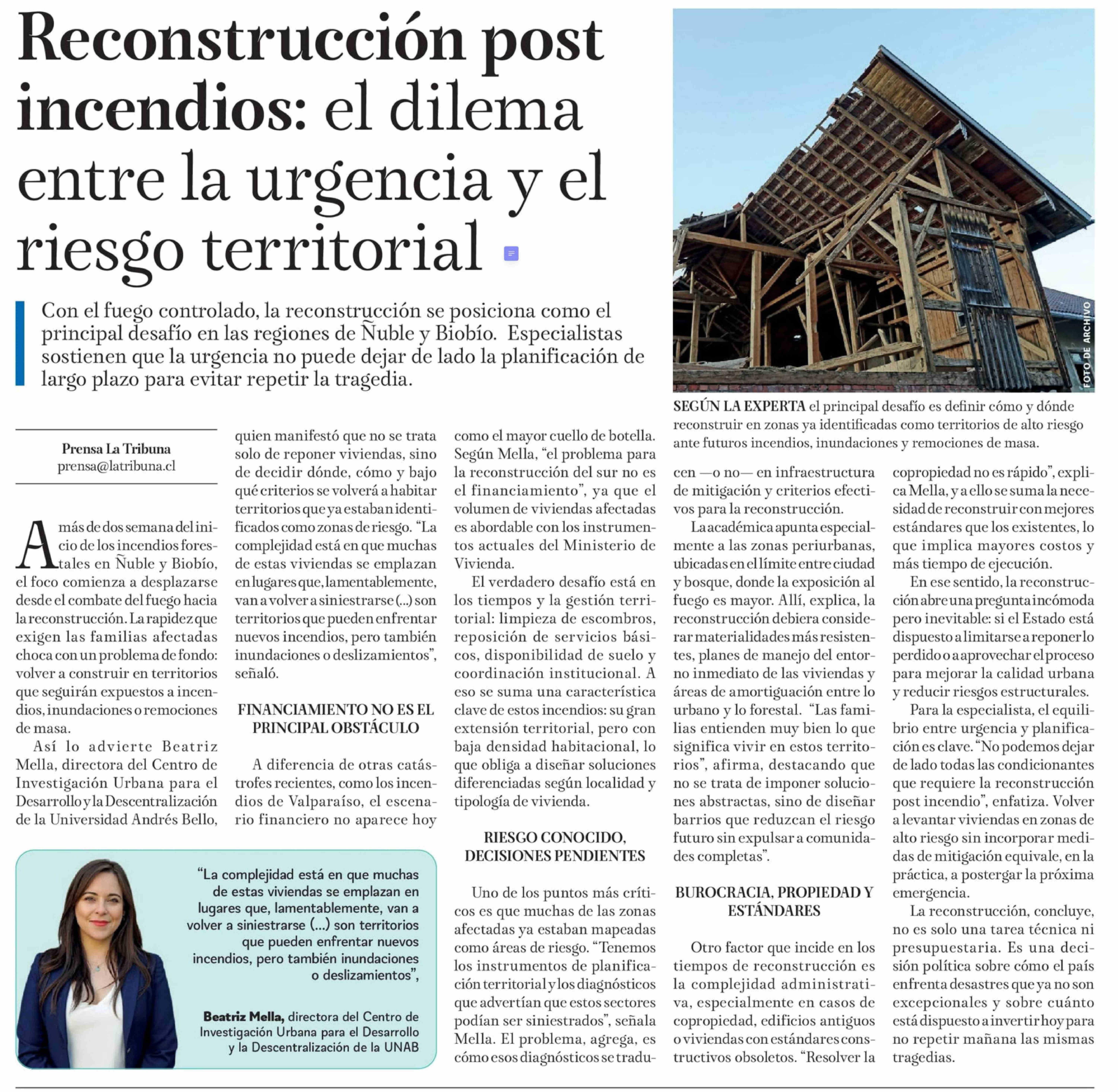 Reconstrucción post incendios: el dilema entre la urgencia y el riesgo territorial