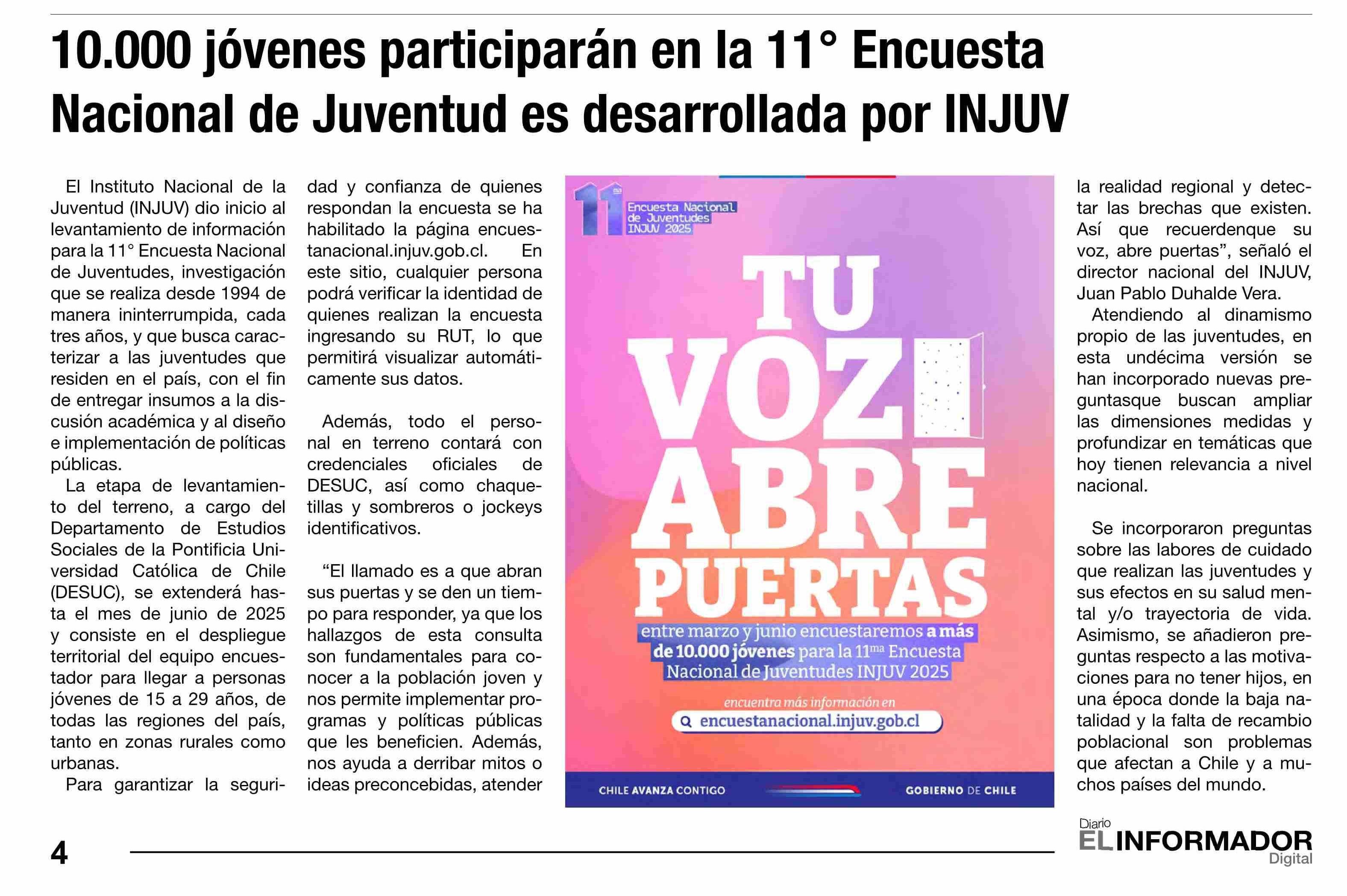 10.000 jóvenes participarán en la 11? Encuesta Nacional de Juventud es desarrollada por INJUV