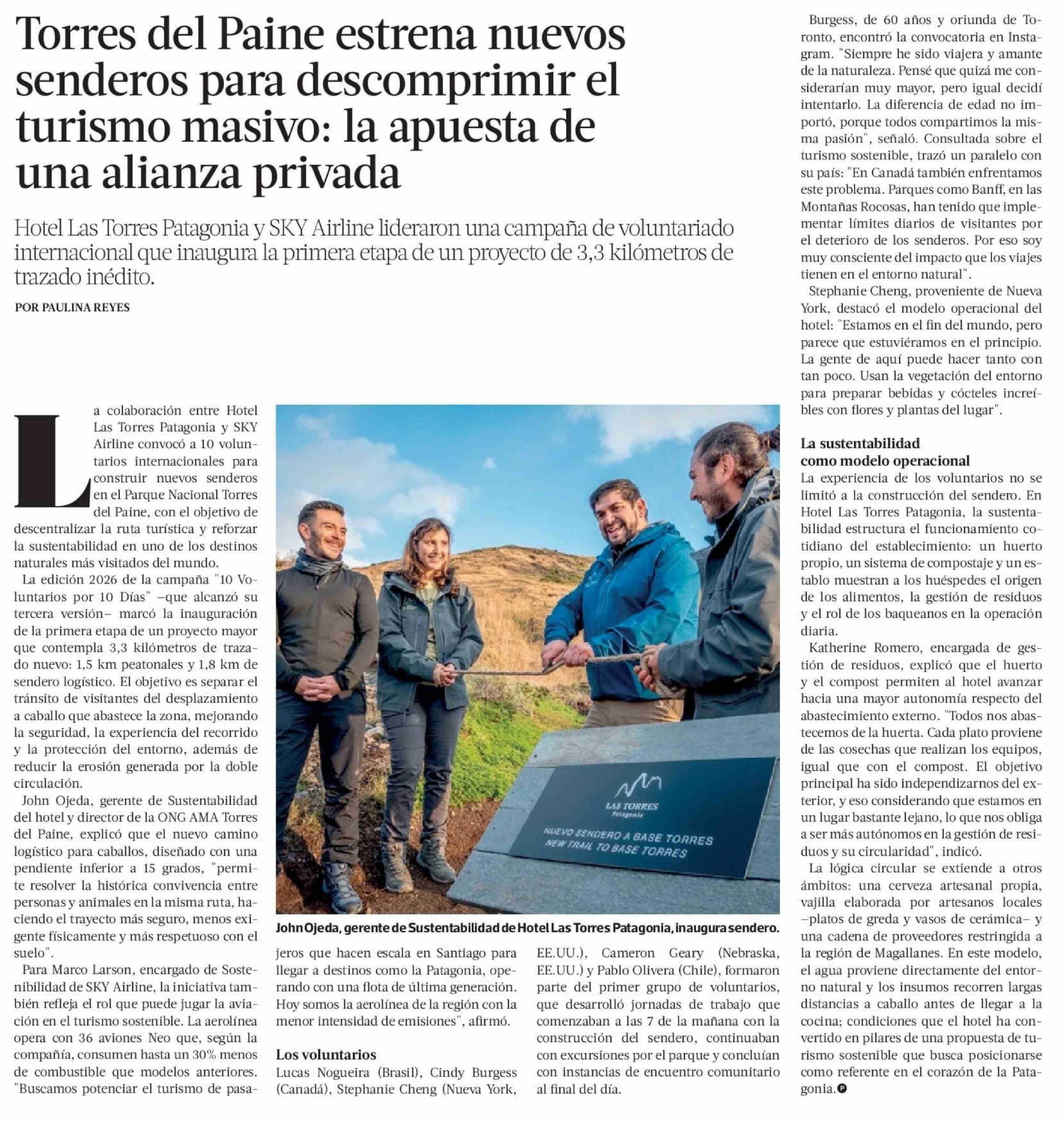 Torres del Paine estrena nuevos senderos para descomprimir el turismo masivo: la apuesta de una alianza privada