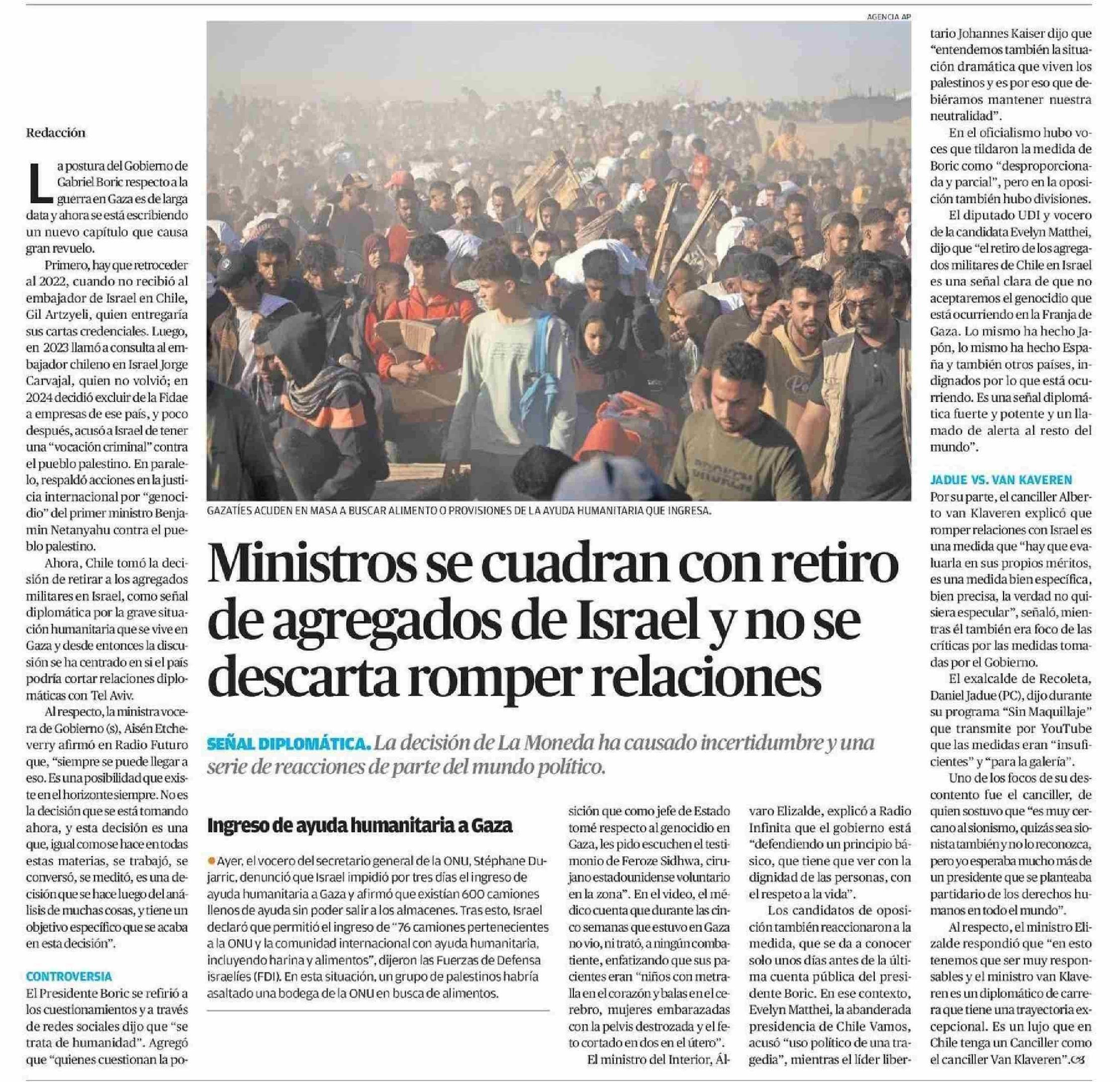 Ministros se cuadran con retiro de agregados de Israel y no se descarta romper relaciones