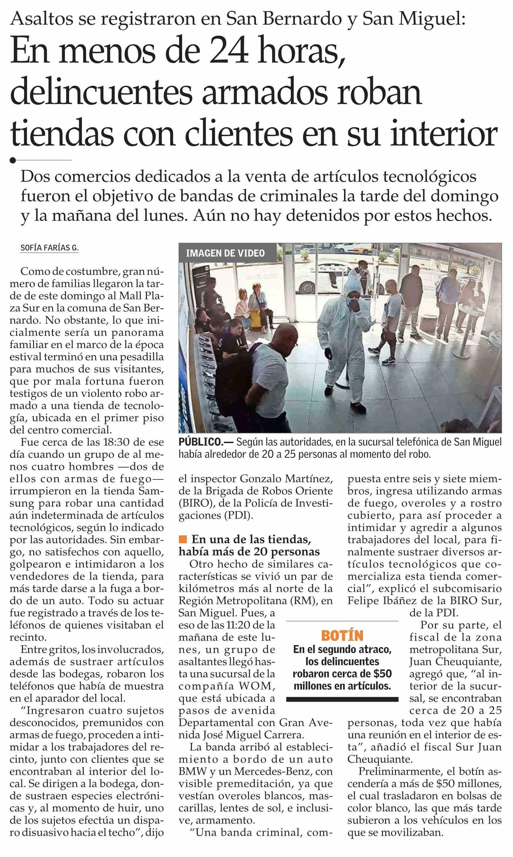 En menos de 24 horas, delincuentes armados roban tiendas con clientes en su interior