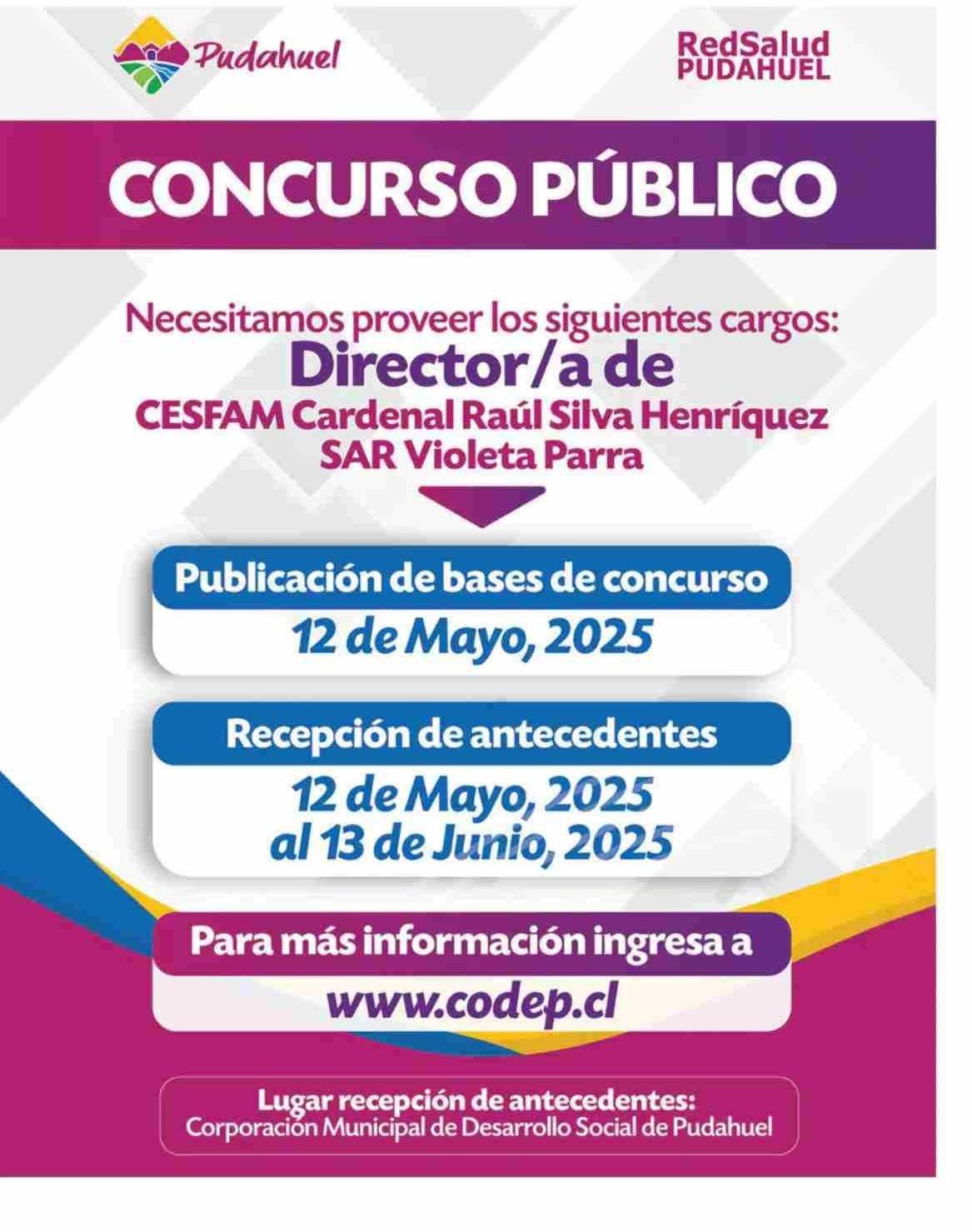 AVISO LICITACIONES: CESFAM Cardenal Raúl Silva Henríquez SAR Violeta Parra - -REDSALUD PUDAHUEL