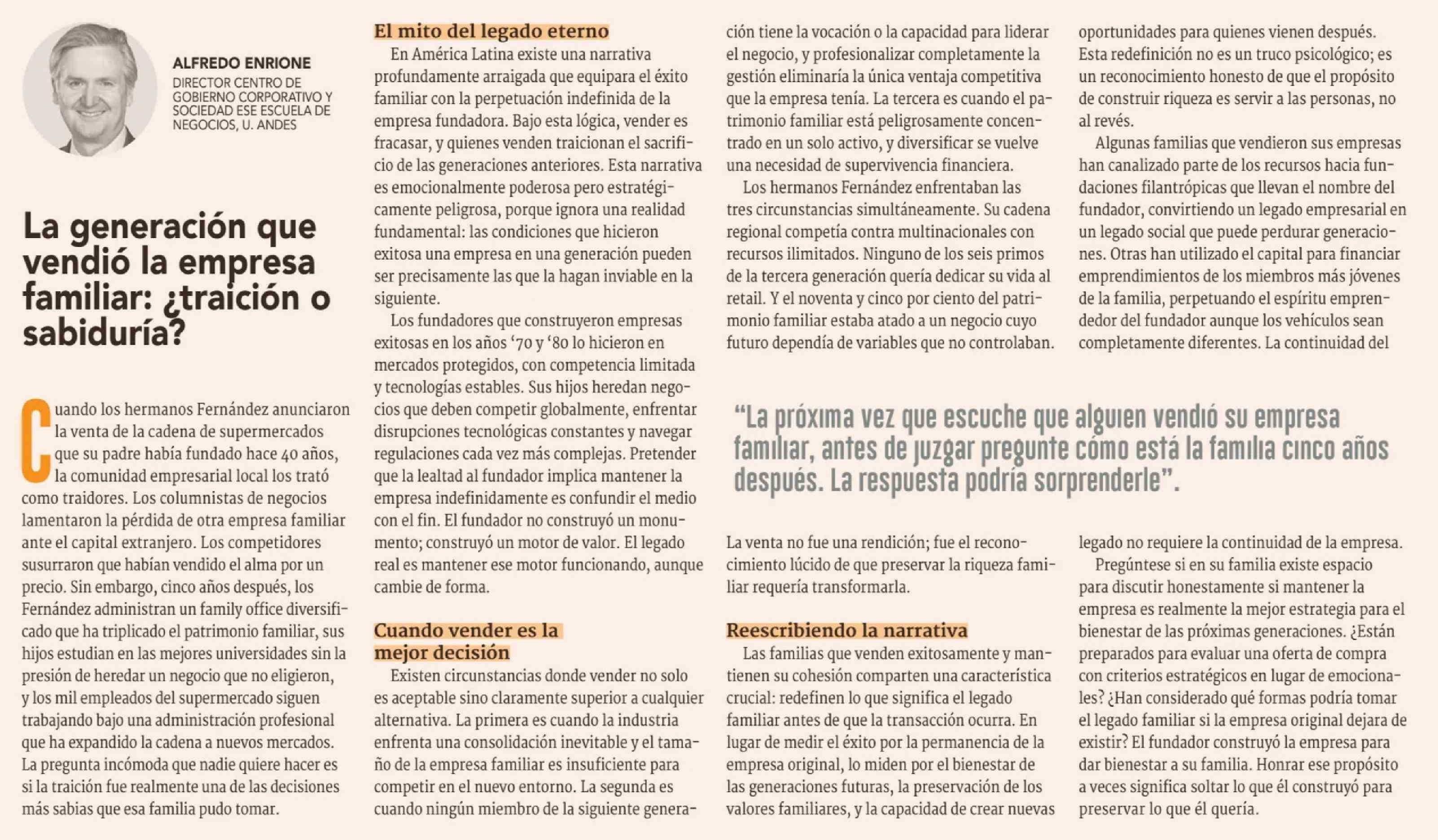 Columnas de Opinión: La generación que vendió la empresa familiar: ¿ traición o sabiduría?
