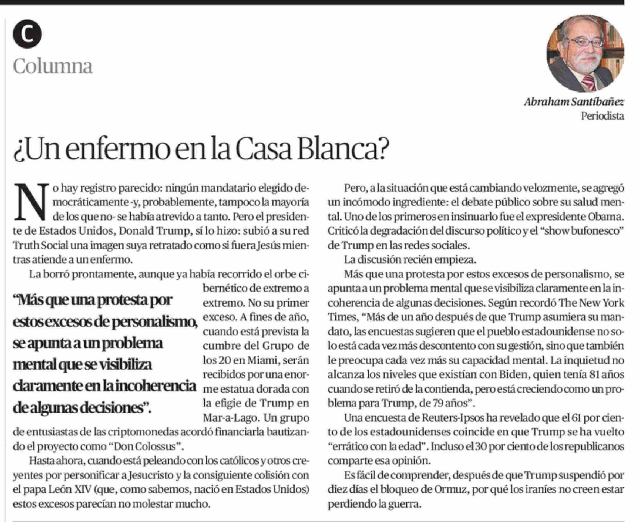 Columnas de Opinión: ¿Un enfermo en la Casa Blanca?