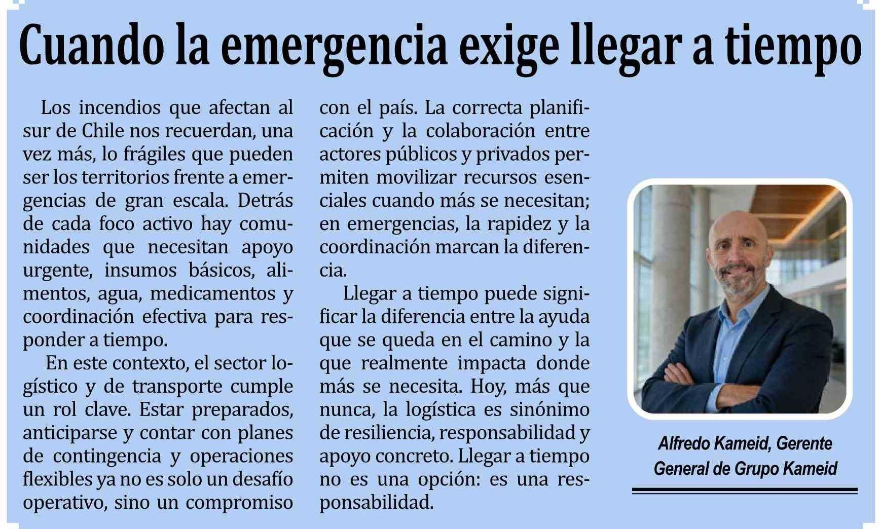 Columnas de Opinión: Cuando la emergencia exige llegar a tiempo