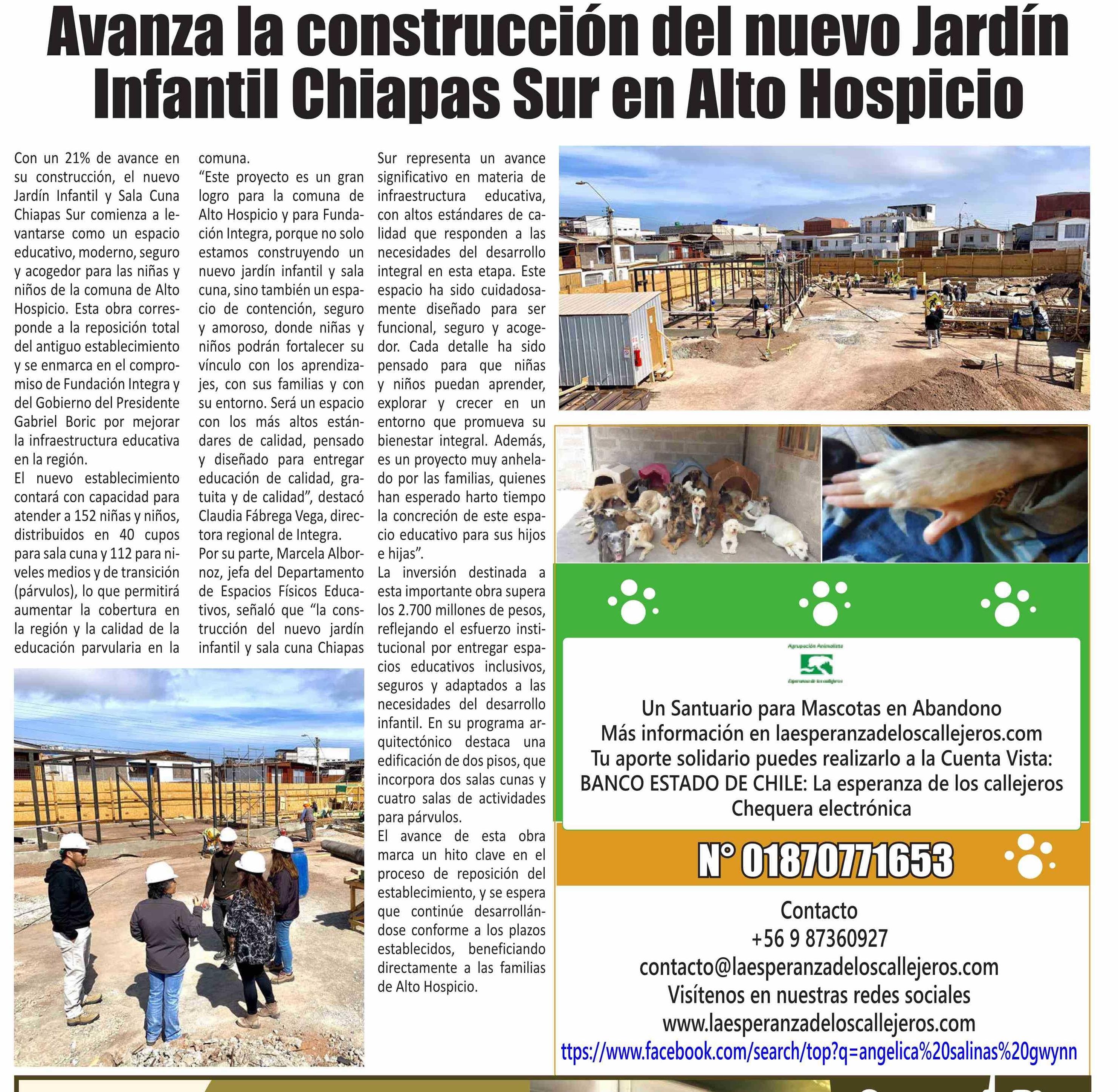 Avanza la construcción del nuevo Jardín Infantil Chiapas Sur en Alto Hospicio