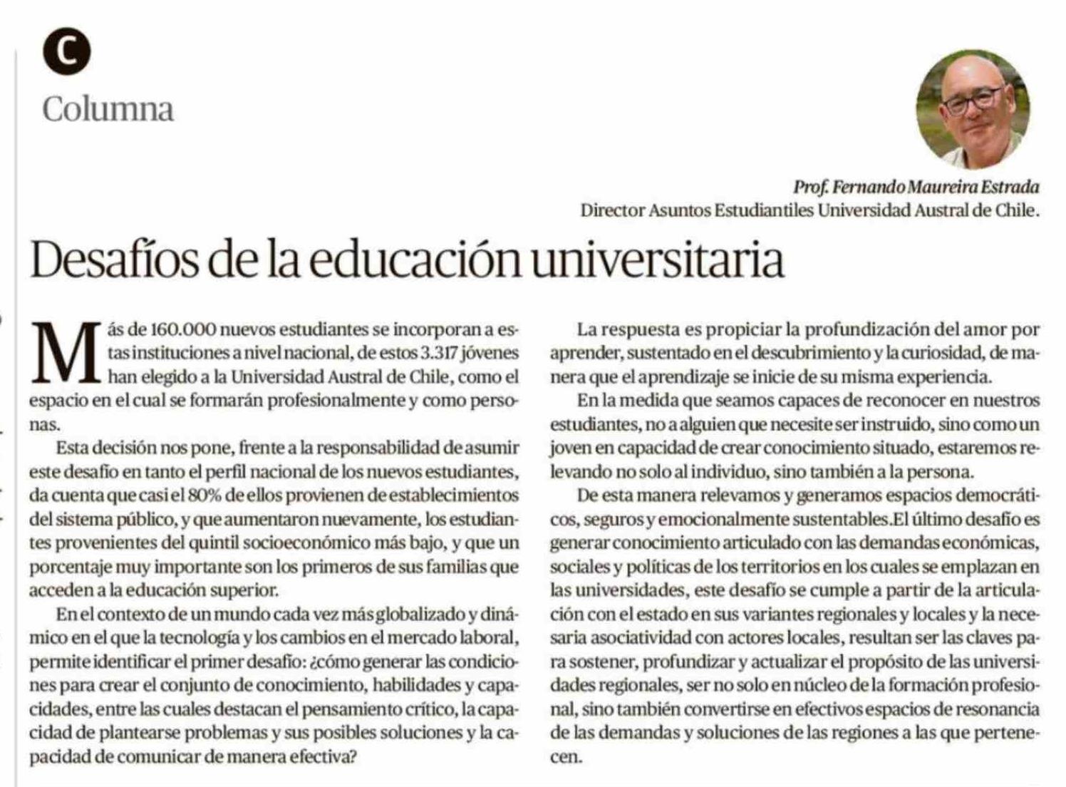 Columnas de Opinión: Desafíos de la educación universitaria
