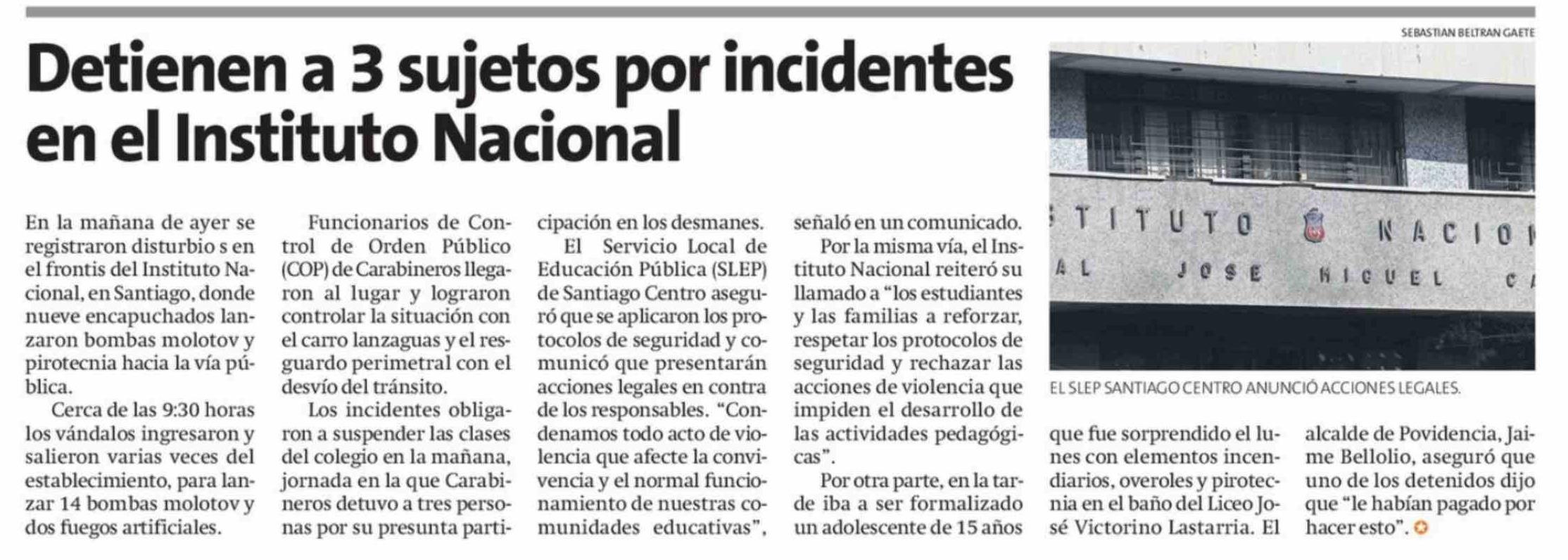Detienen a 3 sujetos por incidentes en el Instituto Nacional