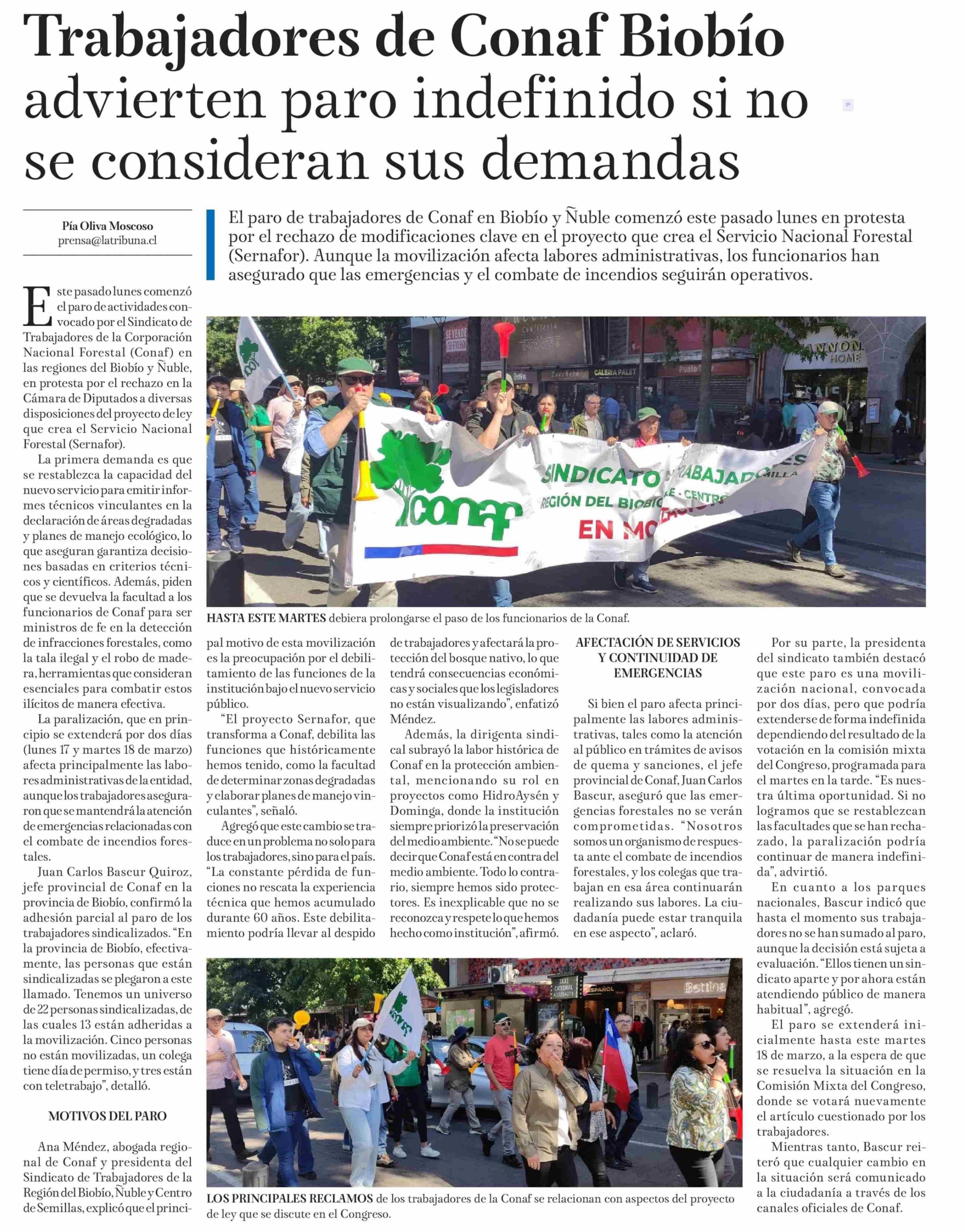 Trabajadores de Conaf Biobío advierten paro indefinido si no se consideran sus demandas