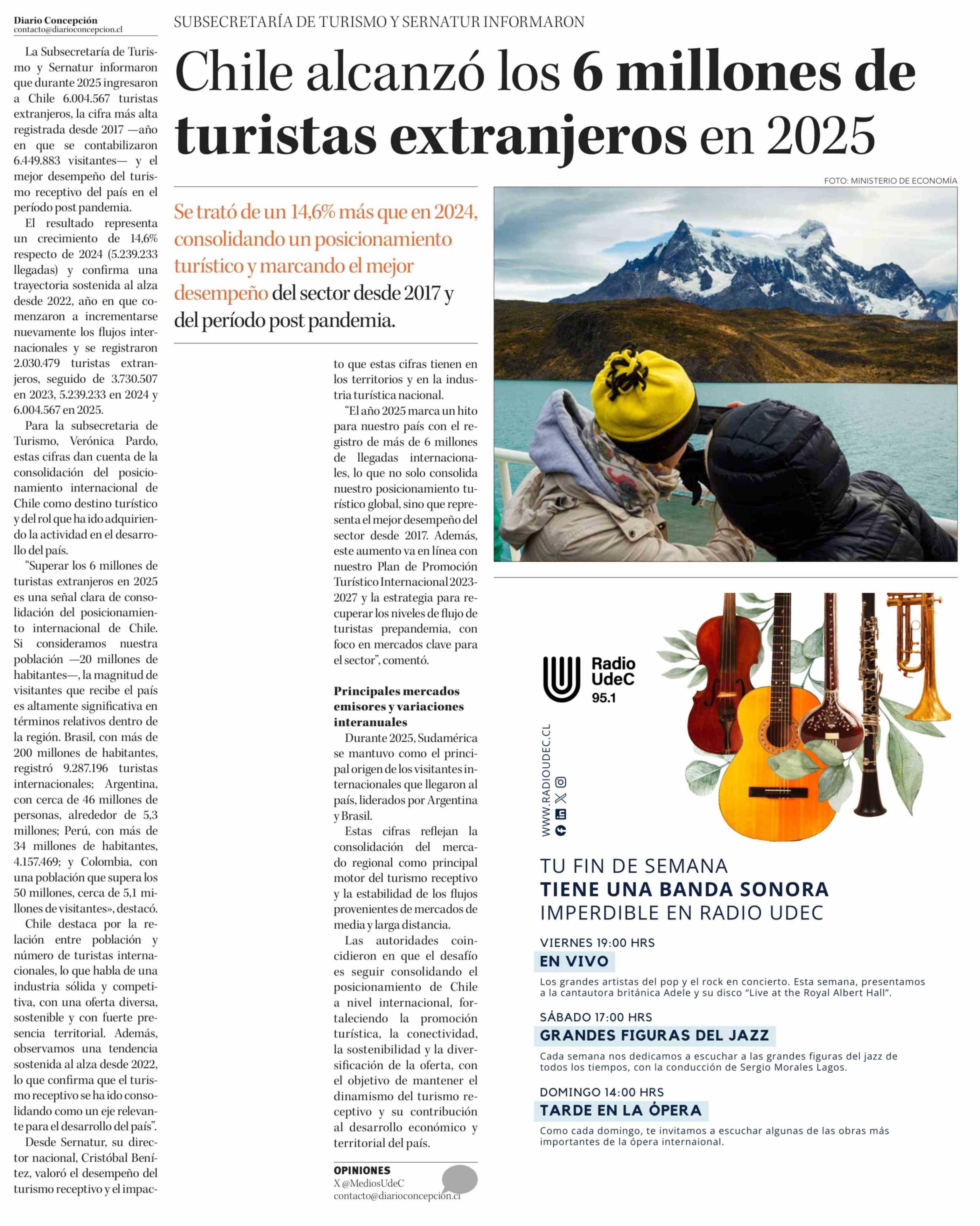 Chile alcanzó los 6 millones de turistas extranjeros en 2025