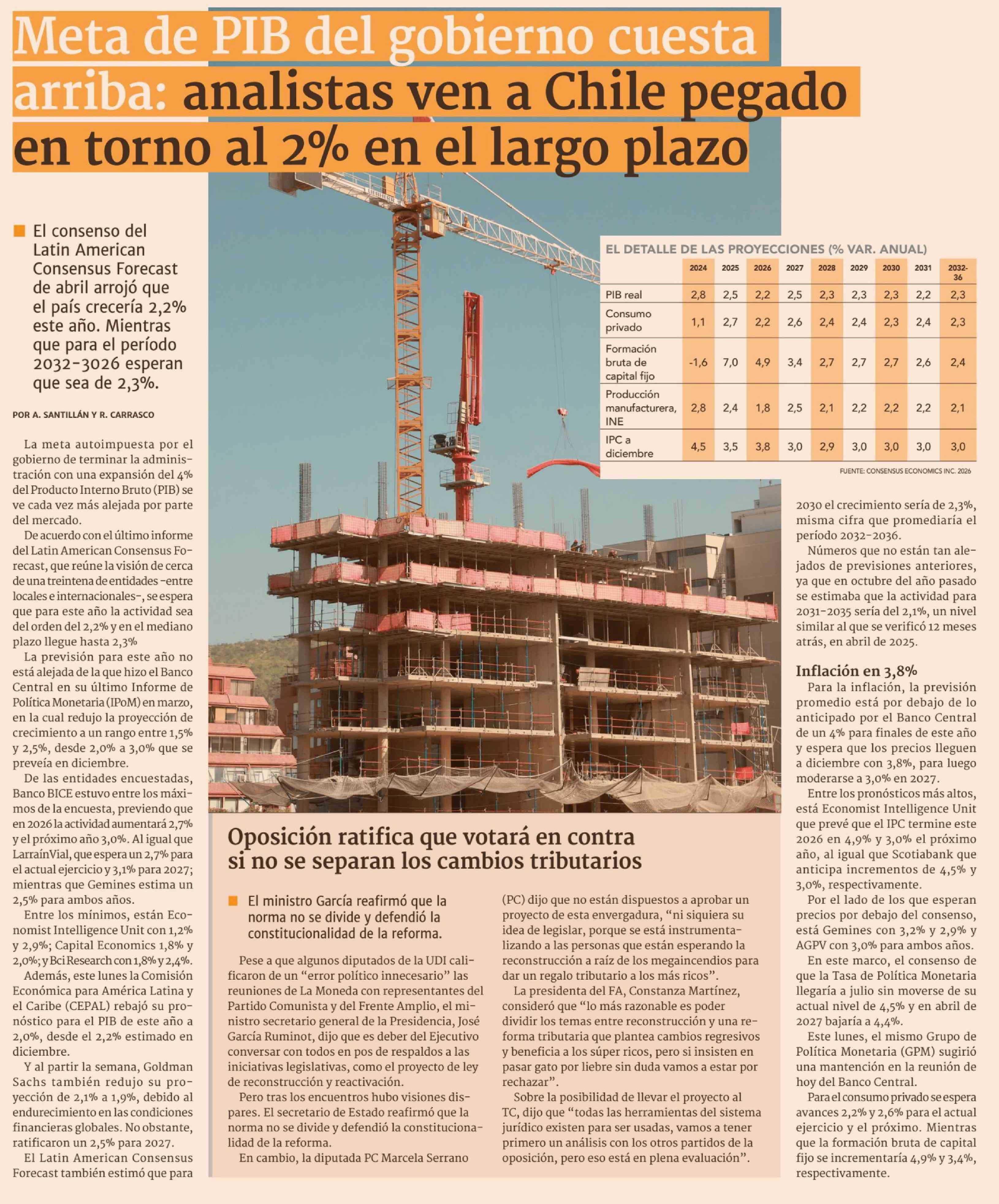 Meta de PIB del gobierno cuesta arriba: analistas ven a Chile pegado en torno al 2% en el largo plazo