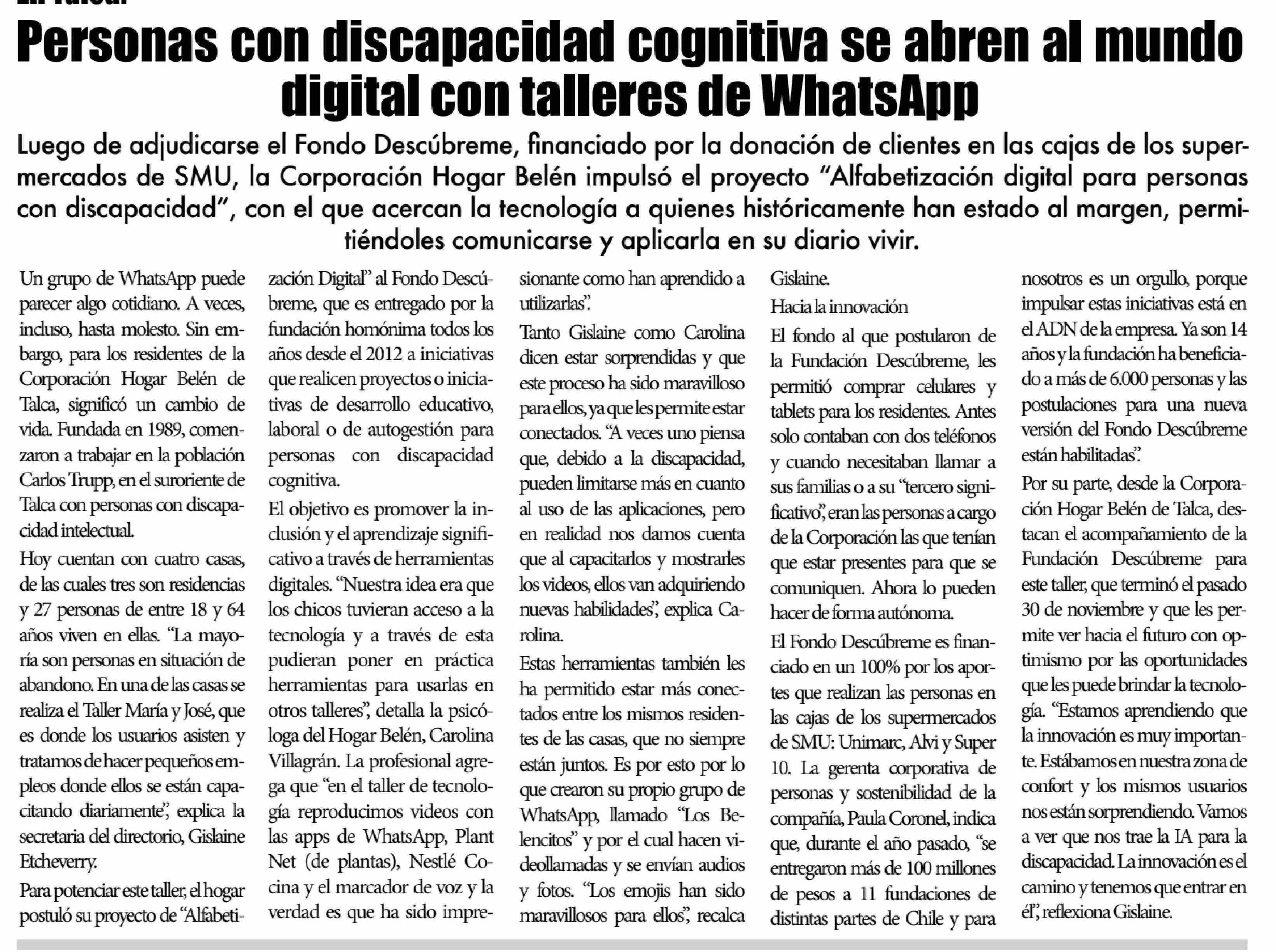 Personas con discapacidad cognitiva se abren al mundo digital con talleres de WhatsApp