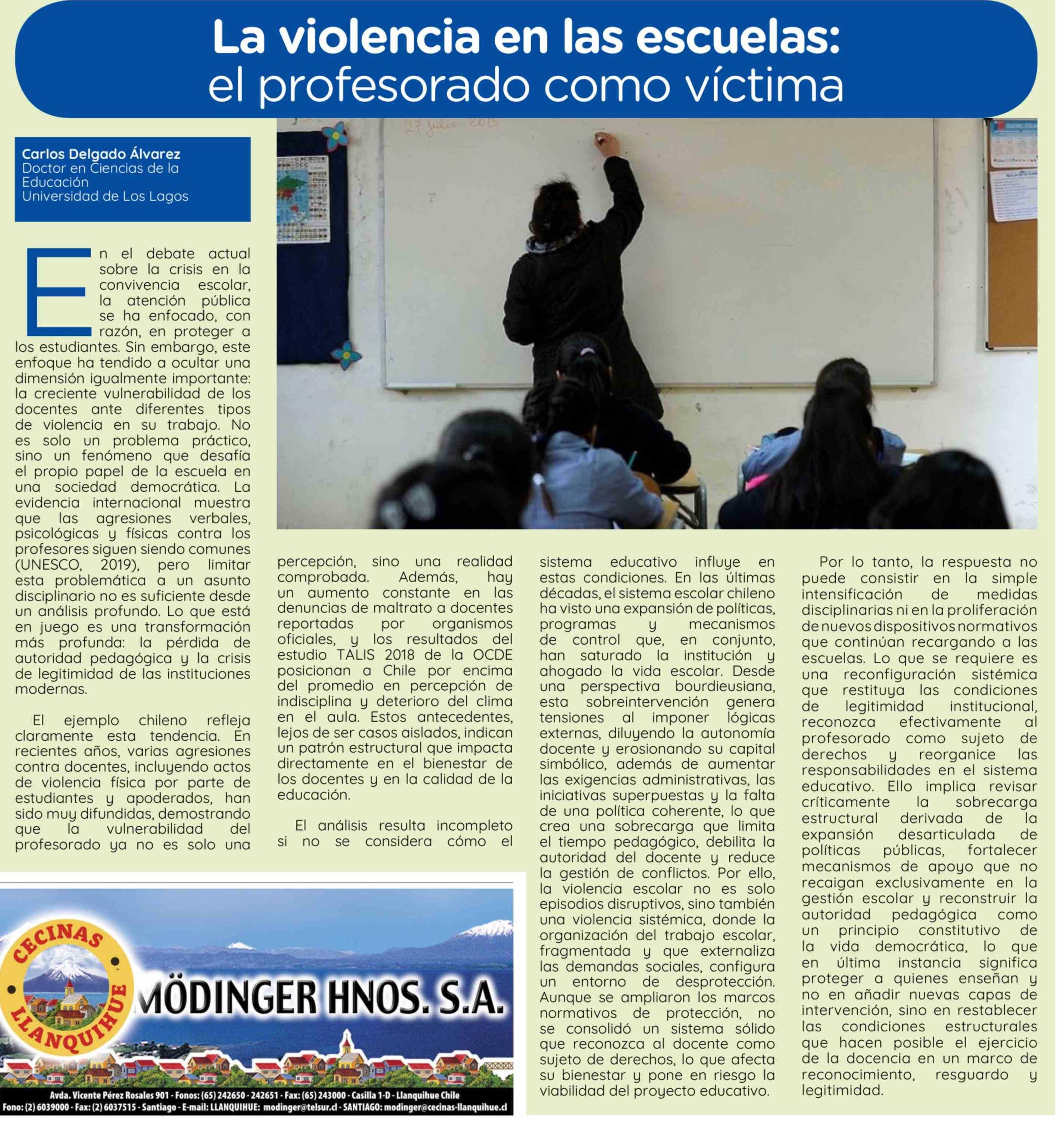 Columnas de Opinión: La violencia en las escuelas: el profesorado como víctima