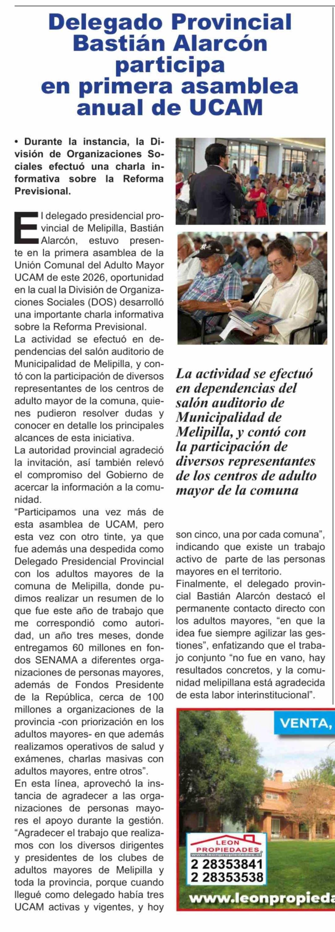 Delegado Provincial Bastián Alarcón participa en primera asamblea anual de UCAM