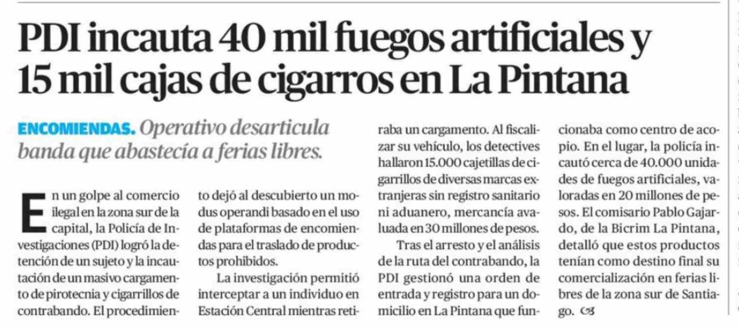 PDI incauta 40 mil fuegos artificiales y 15 mil cajas de cigarros en La Pintana