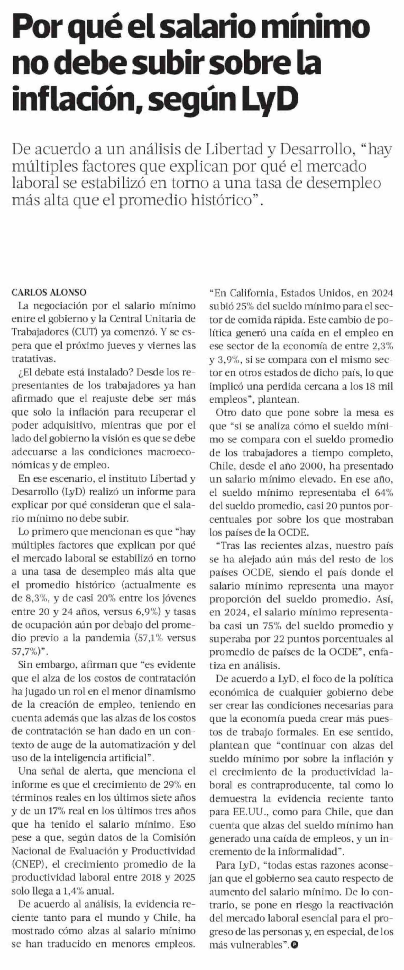 Por qué el salario mínimo no debe subir sobre la inflación, según LyD
