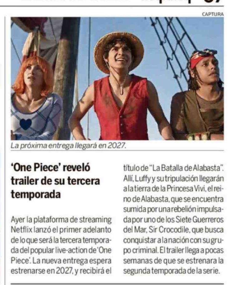 'One Piece' reveló trailer de su tercera temporada
