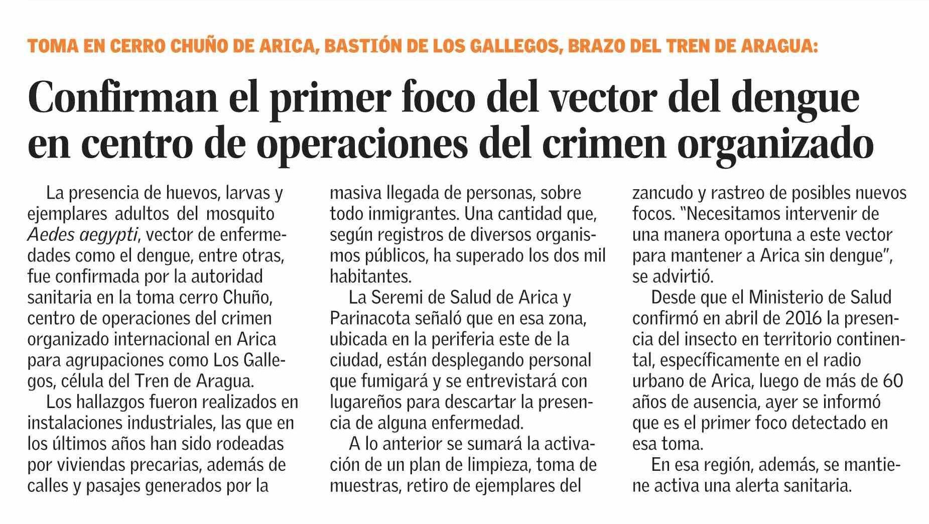 Título: Confirman el primer foco del vector del dengue en centro de operaciones del crimen organizado