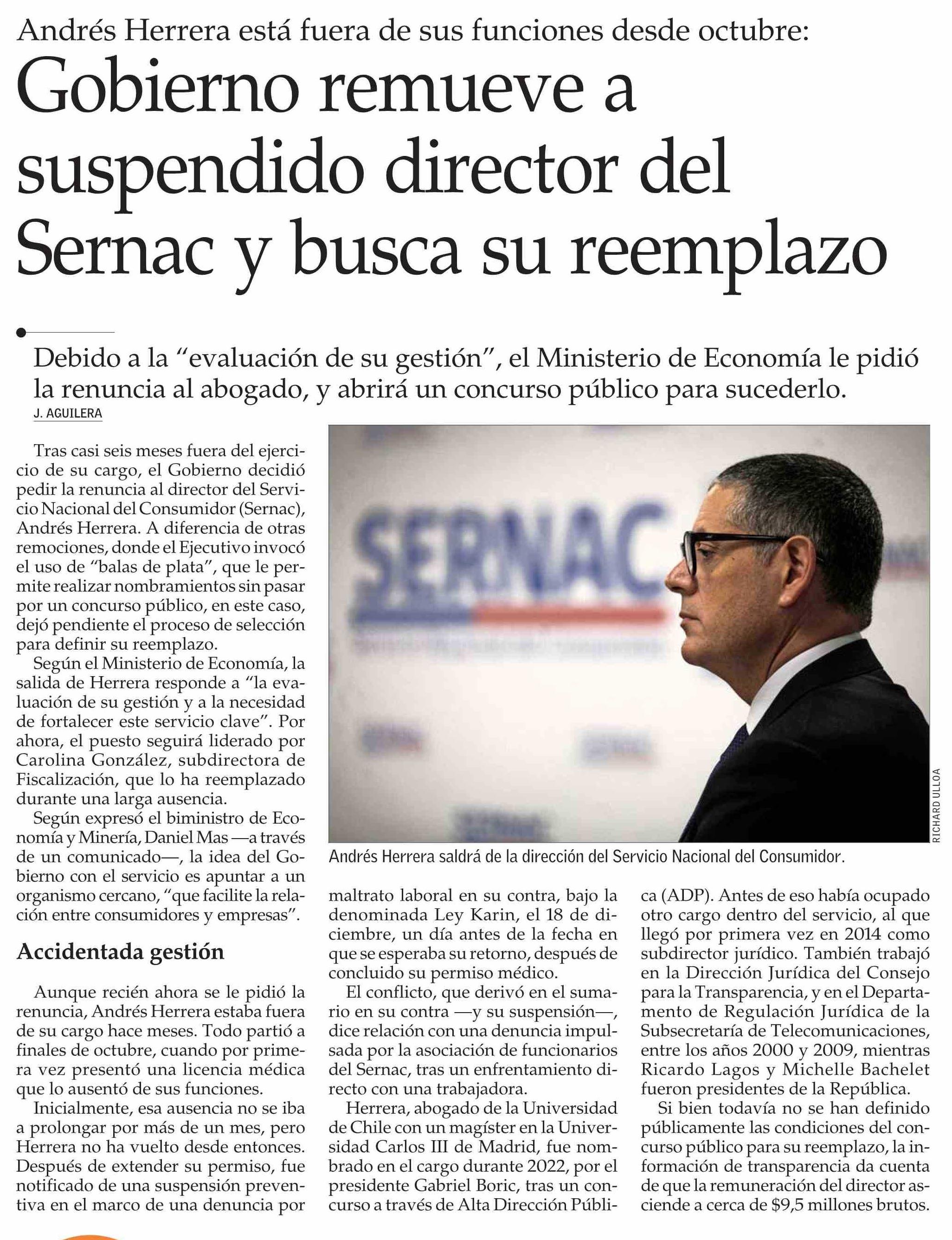 Gobierno remueve a suspendido director del Sernac y busca su reemplazo