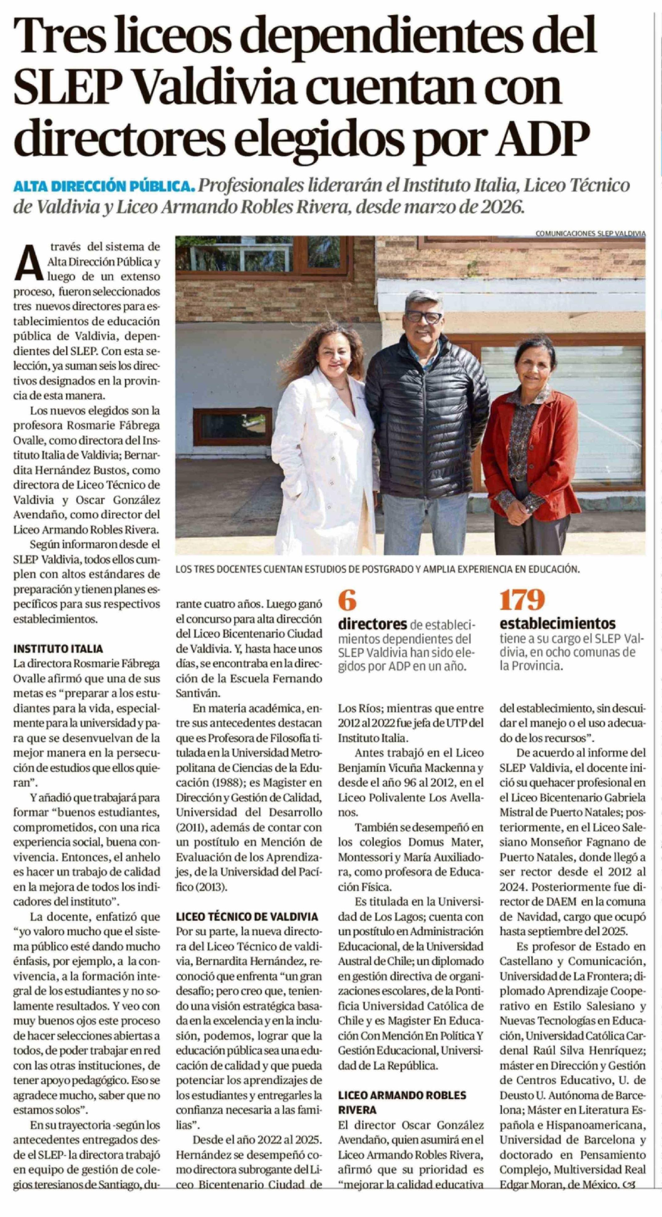 Tres liceos dependientes del SLEP Valdivia cuentan con directores elegidos por ADP