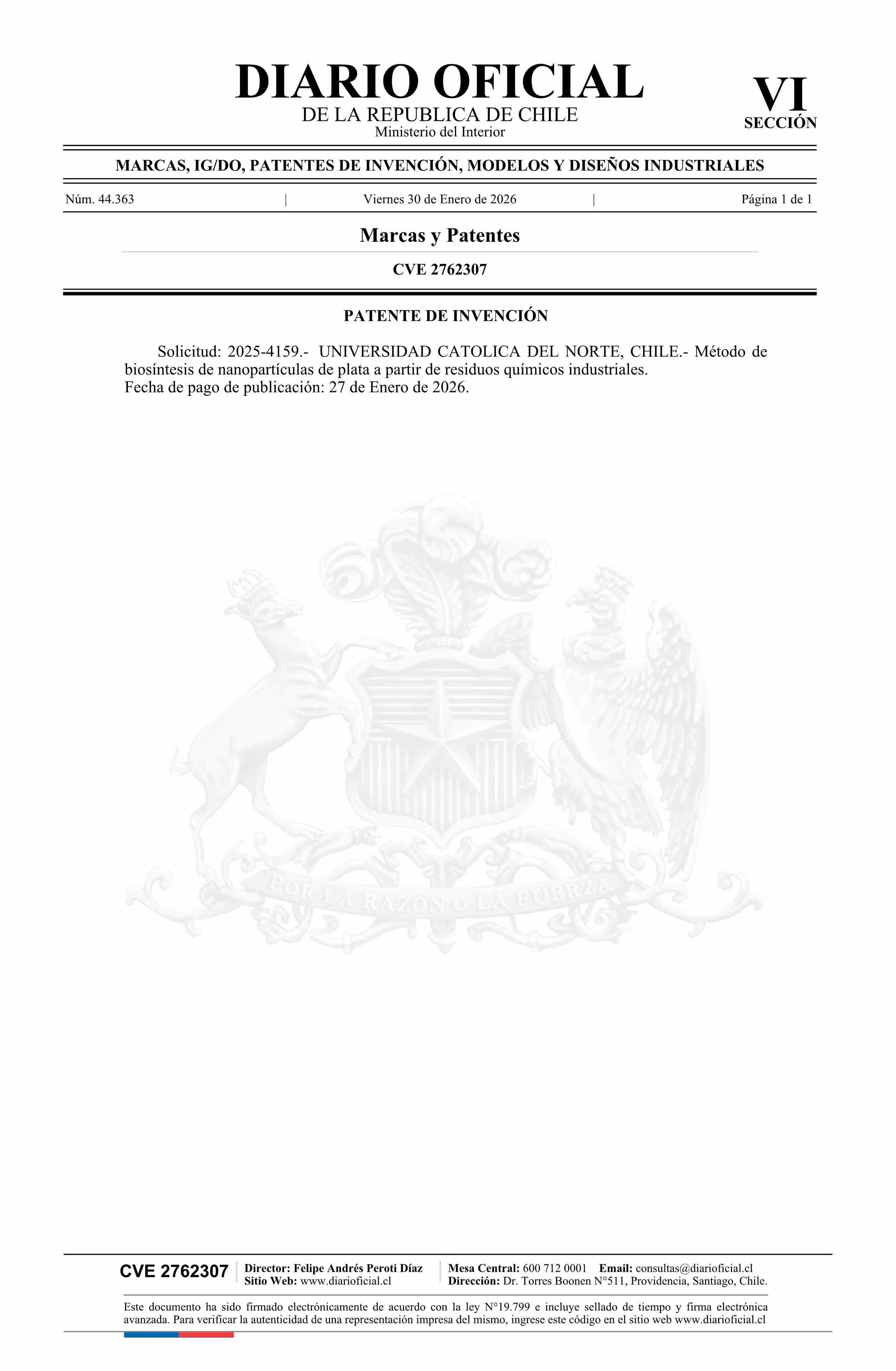 Diario Oficial Edición Electrónica (Diario Oficial de Chile - 6 Marcas Y Patentes)