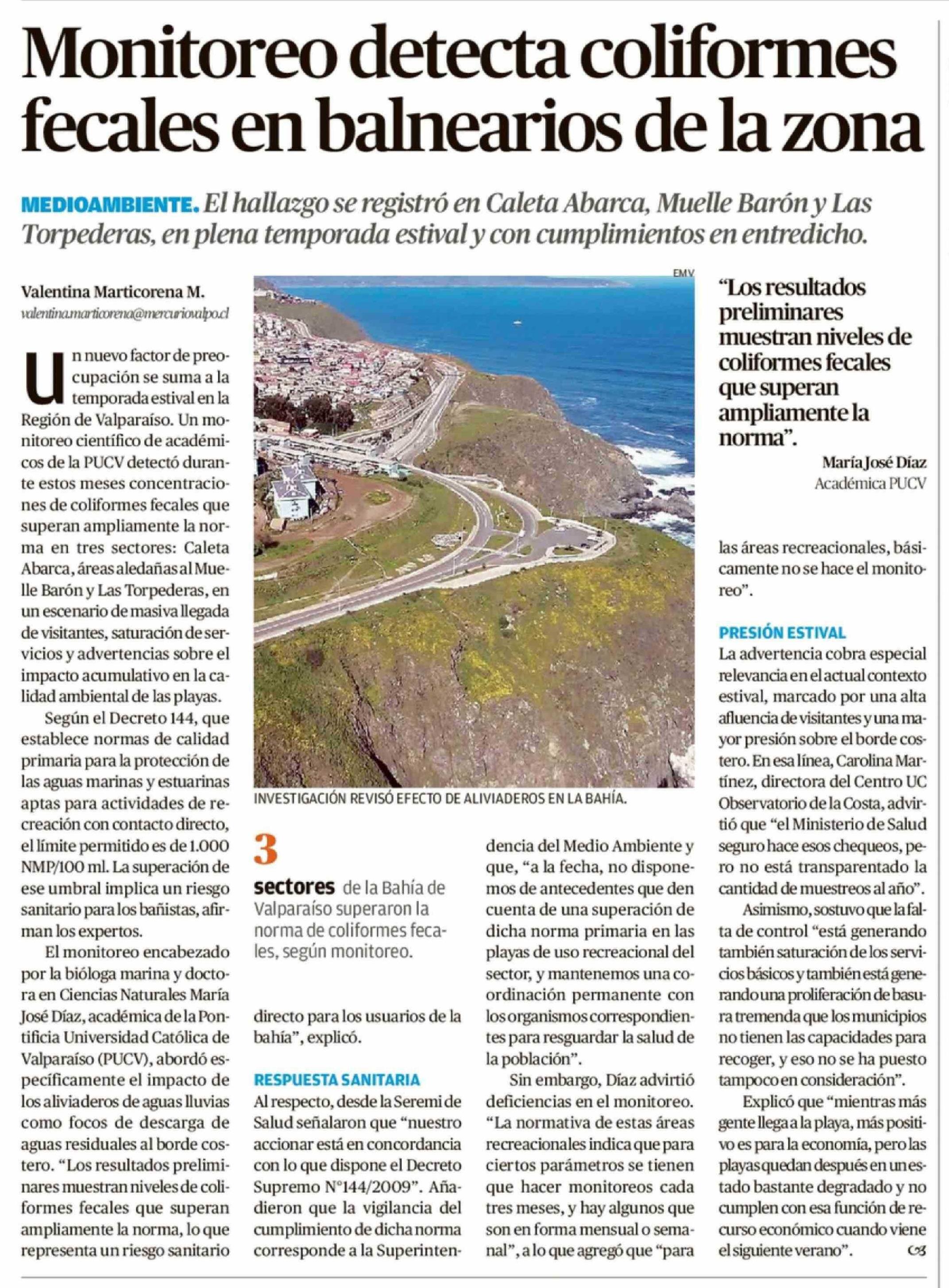 Título: Monitoreo detecta coliformes fecales en balnearios de la zona