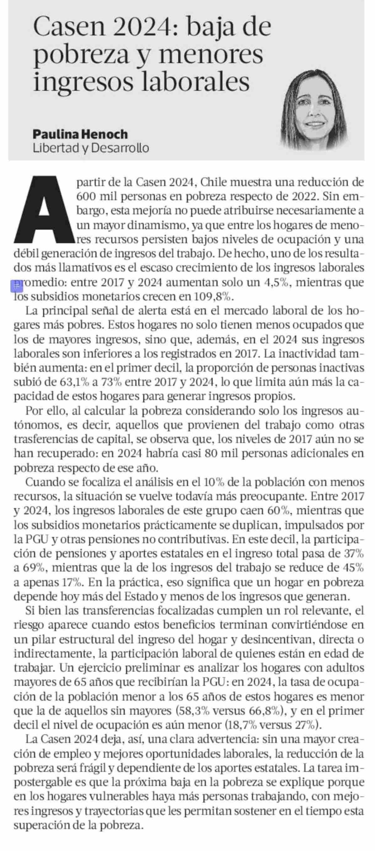 Columnas de Opinión: Casen 2024: baja de pobreza y menores ingresos laborales