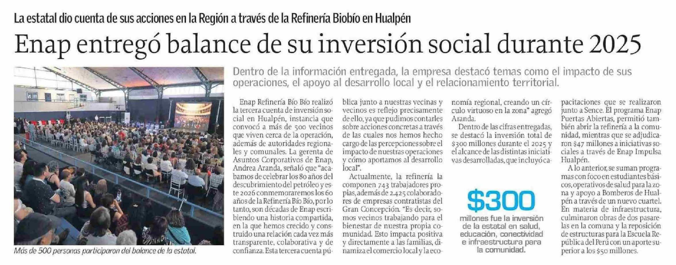 Enap entregó balance de su inversión social durante 2025